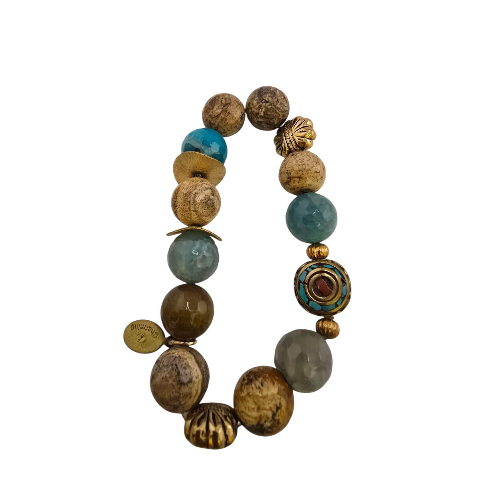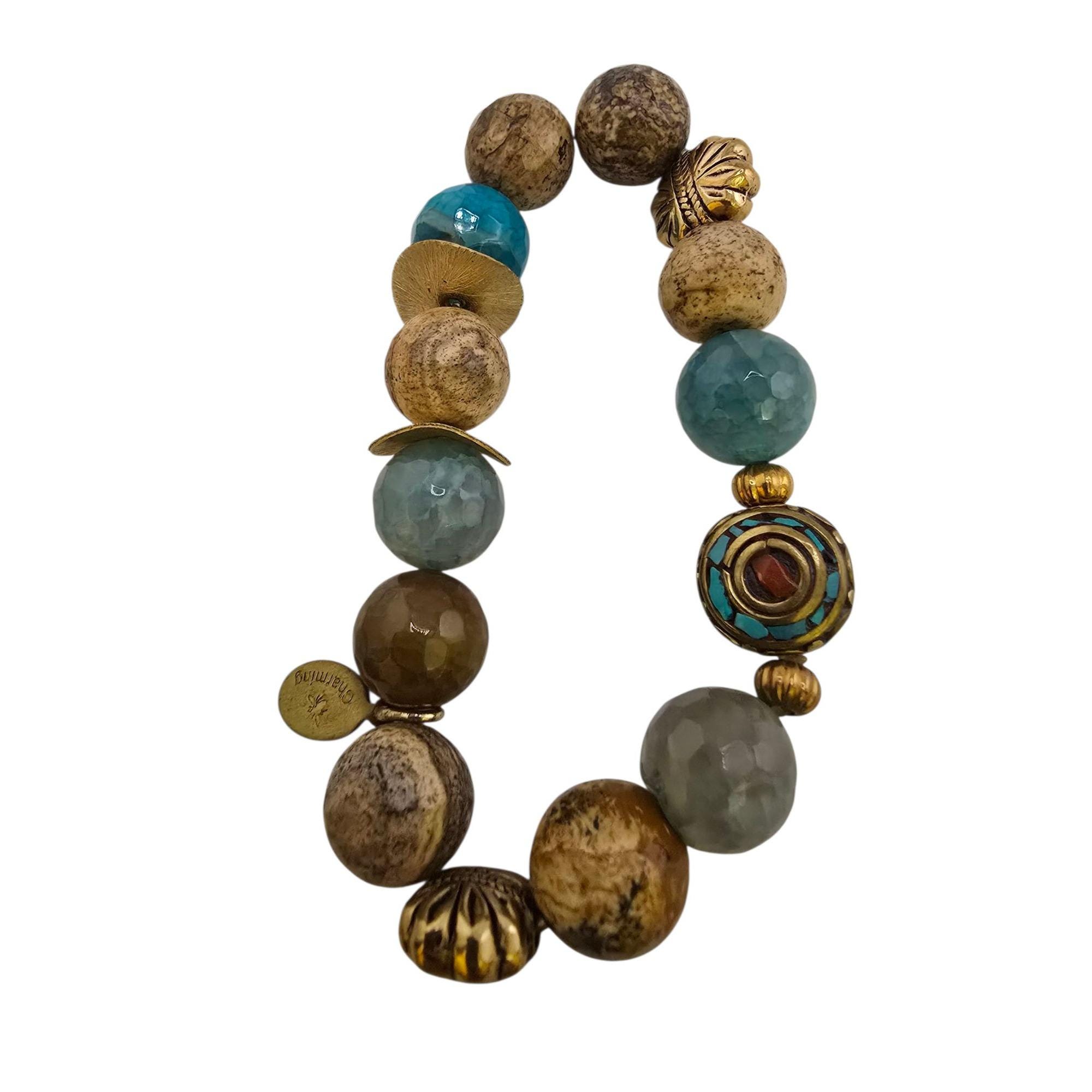 Vintage NOS Bee Charming Larimar & Semi Precious Bali Beaded Stretch Bracelet (A9223)