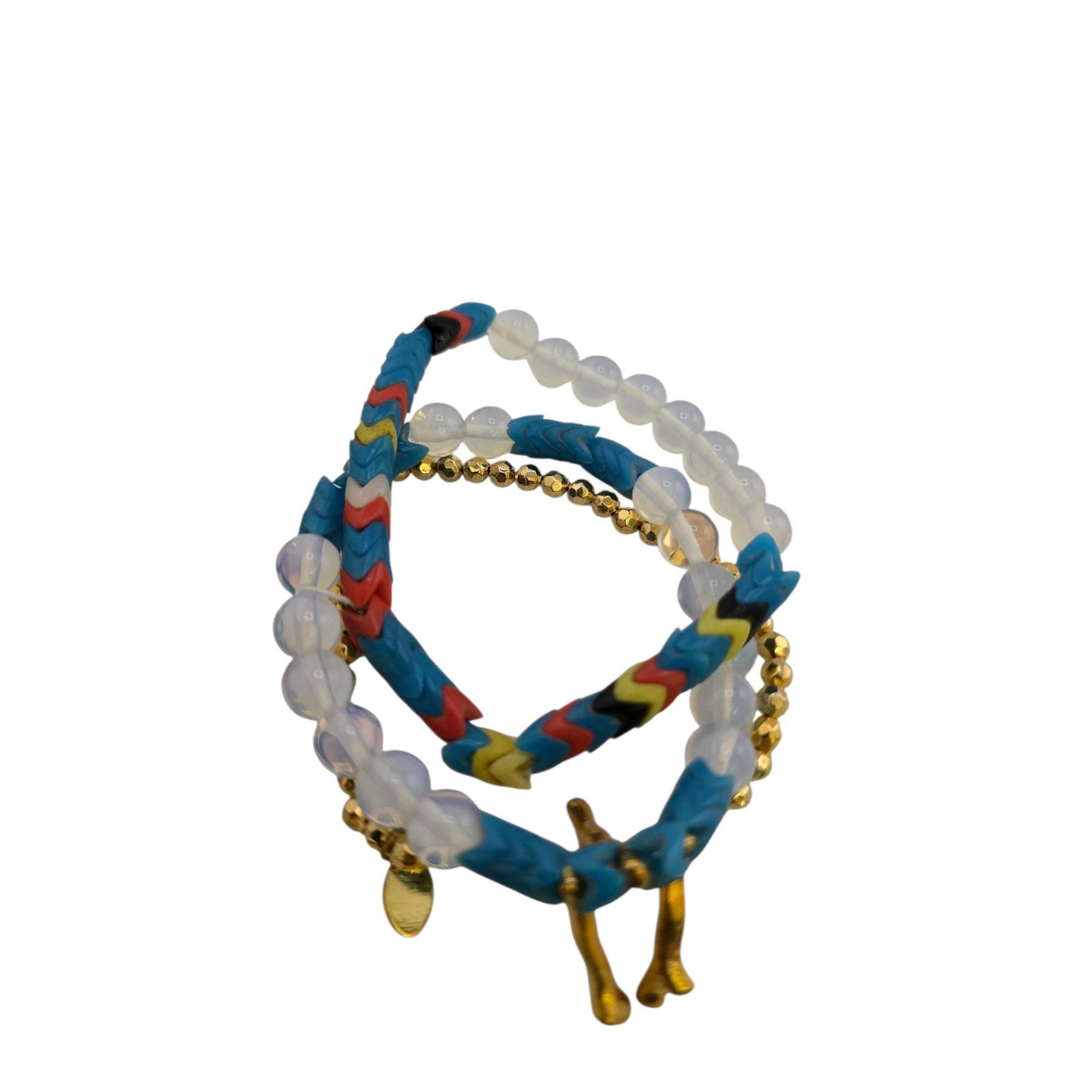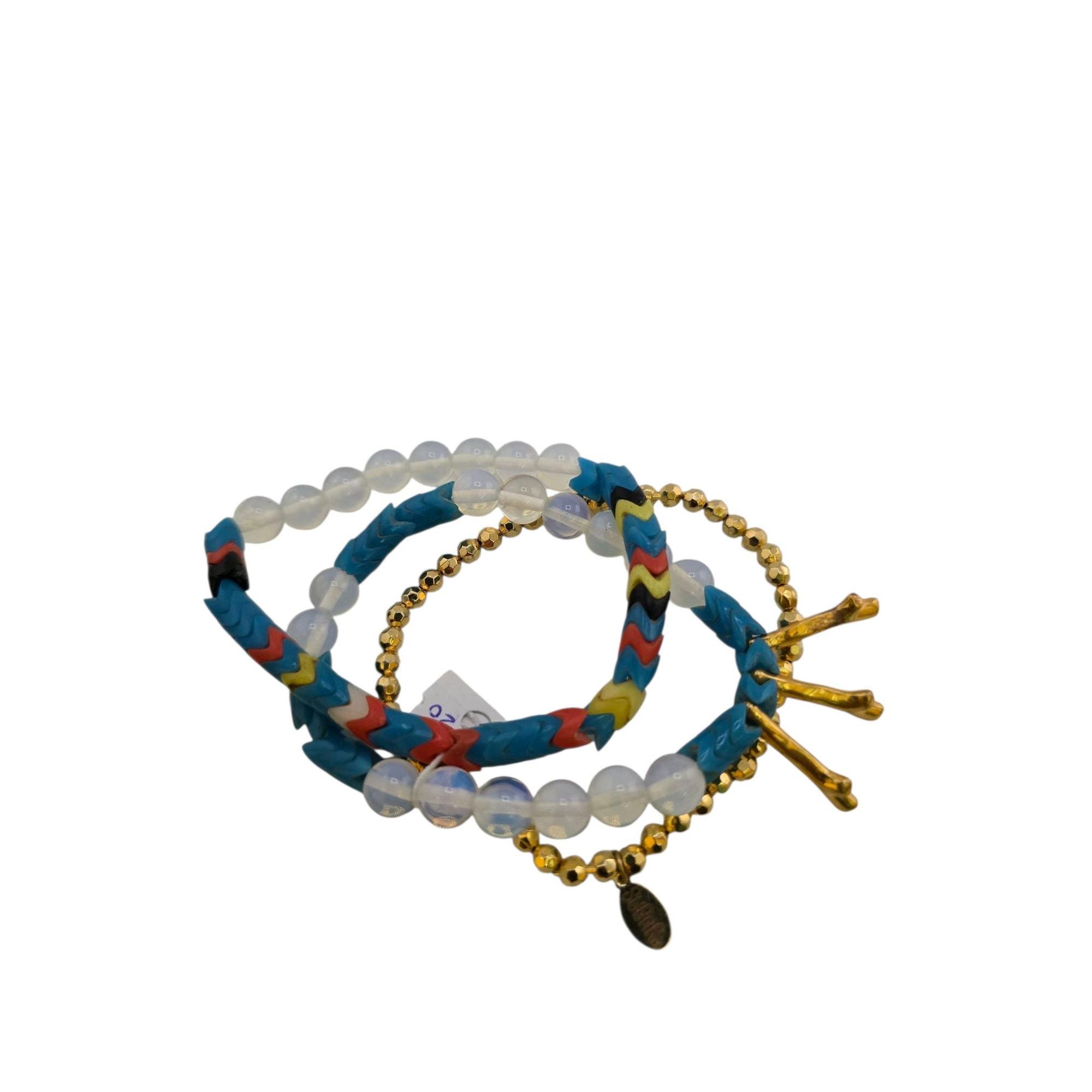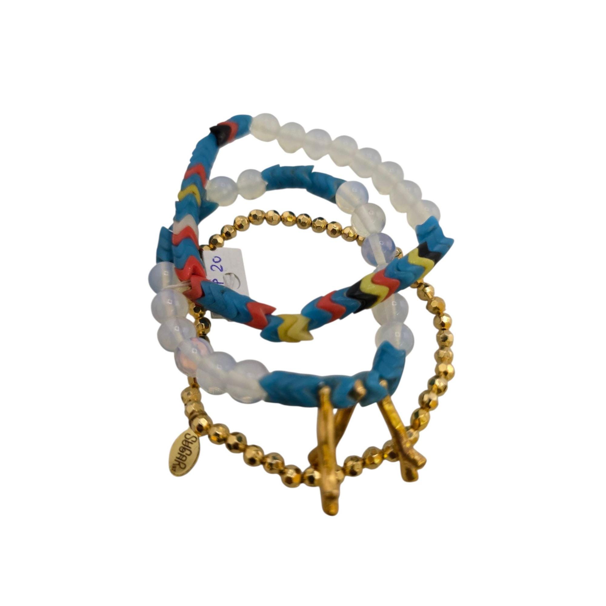 Vintage Sugar NY 3-Strand Glass Vulcanite Record Bead Beaded Bracelet (A9229)