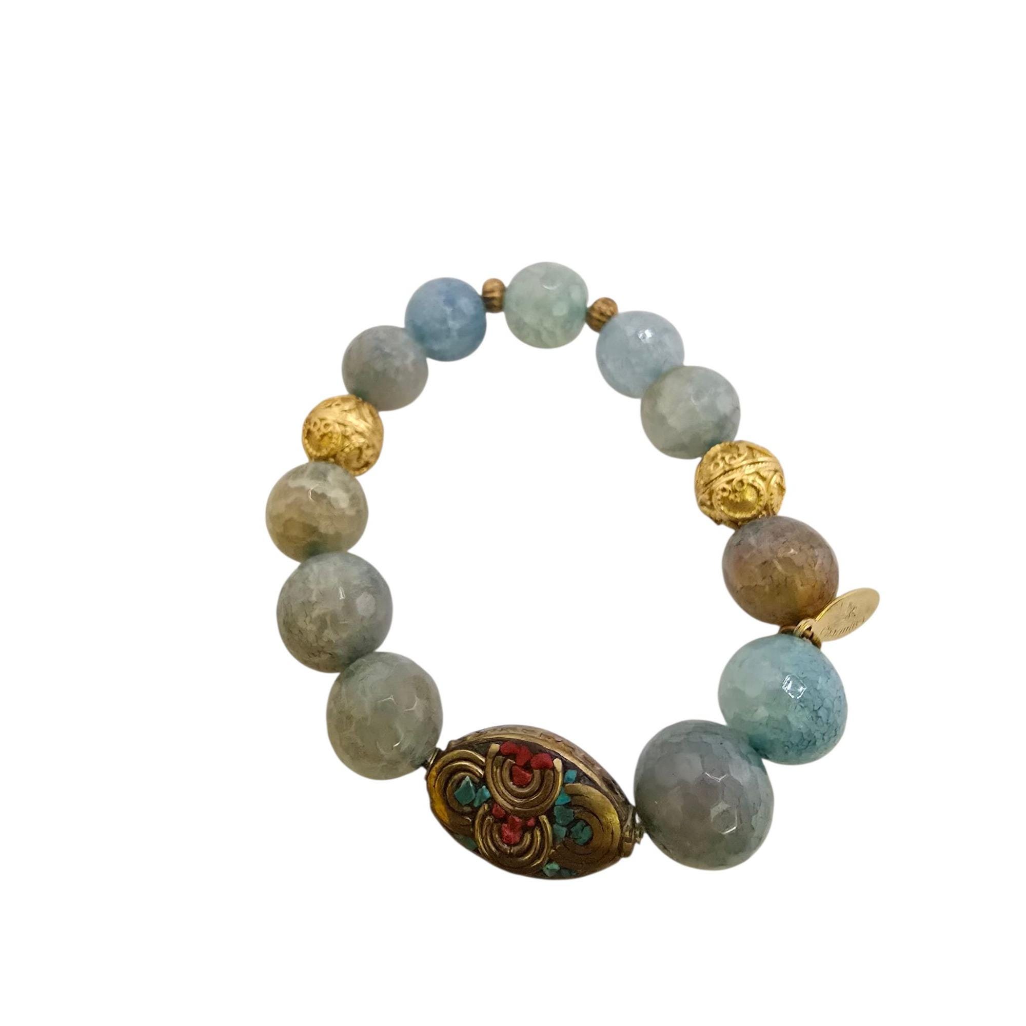 Vintage NOS Bee Charming Larimar Bali Beaded Stretch Bracelet (A9221)