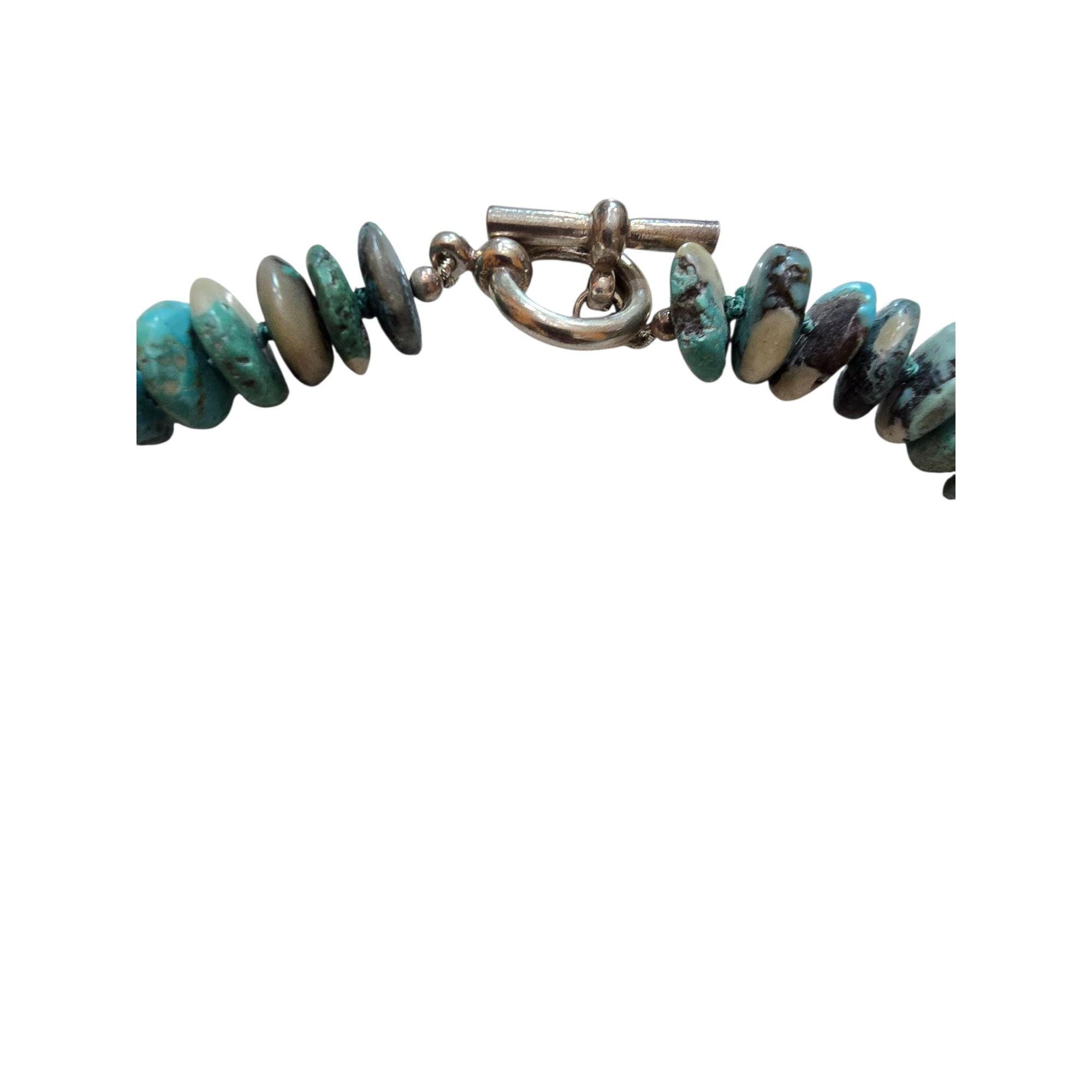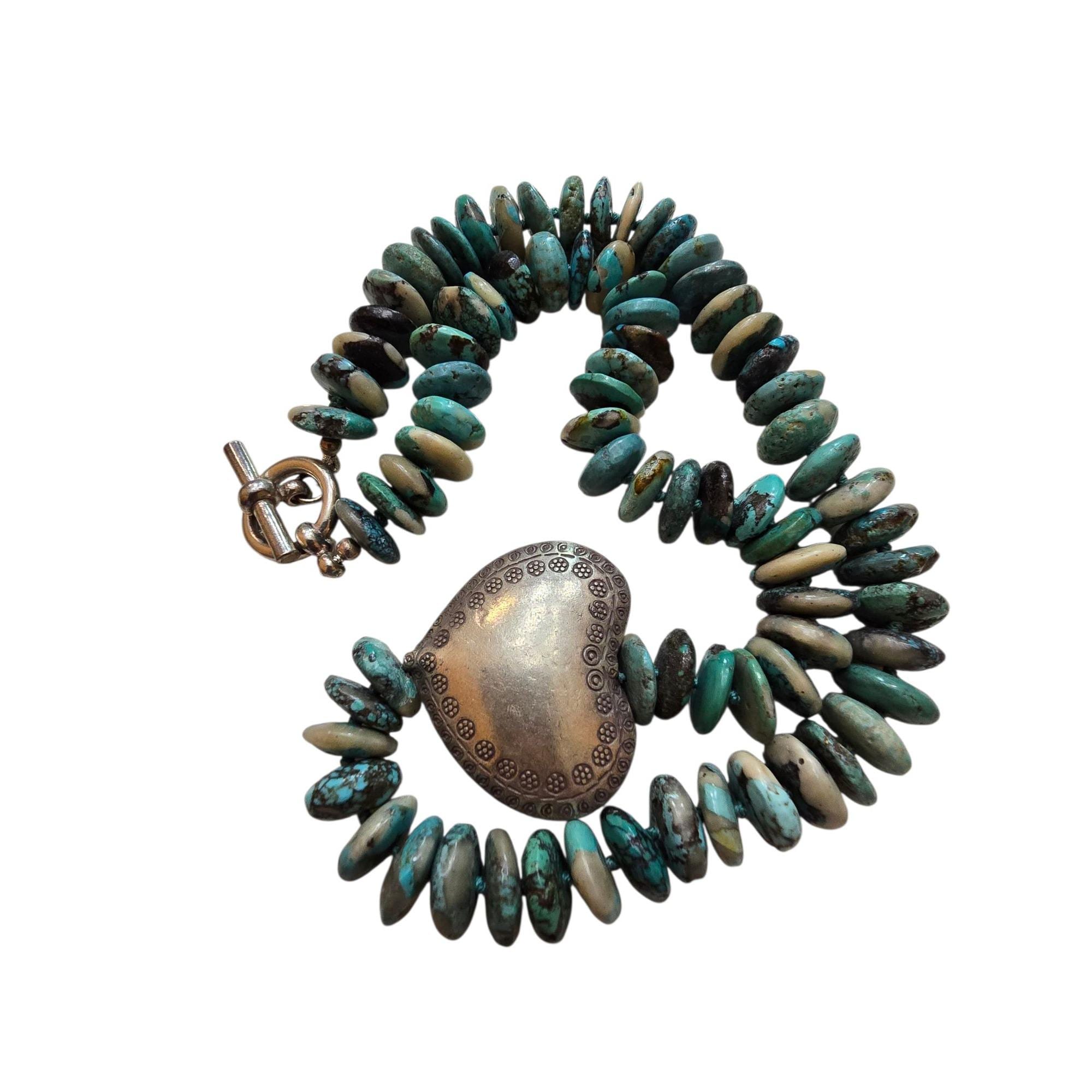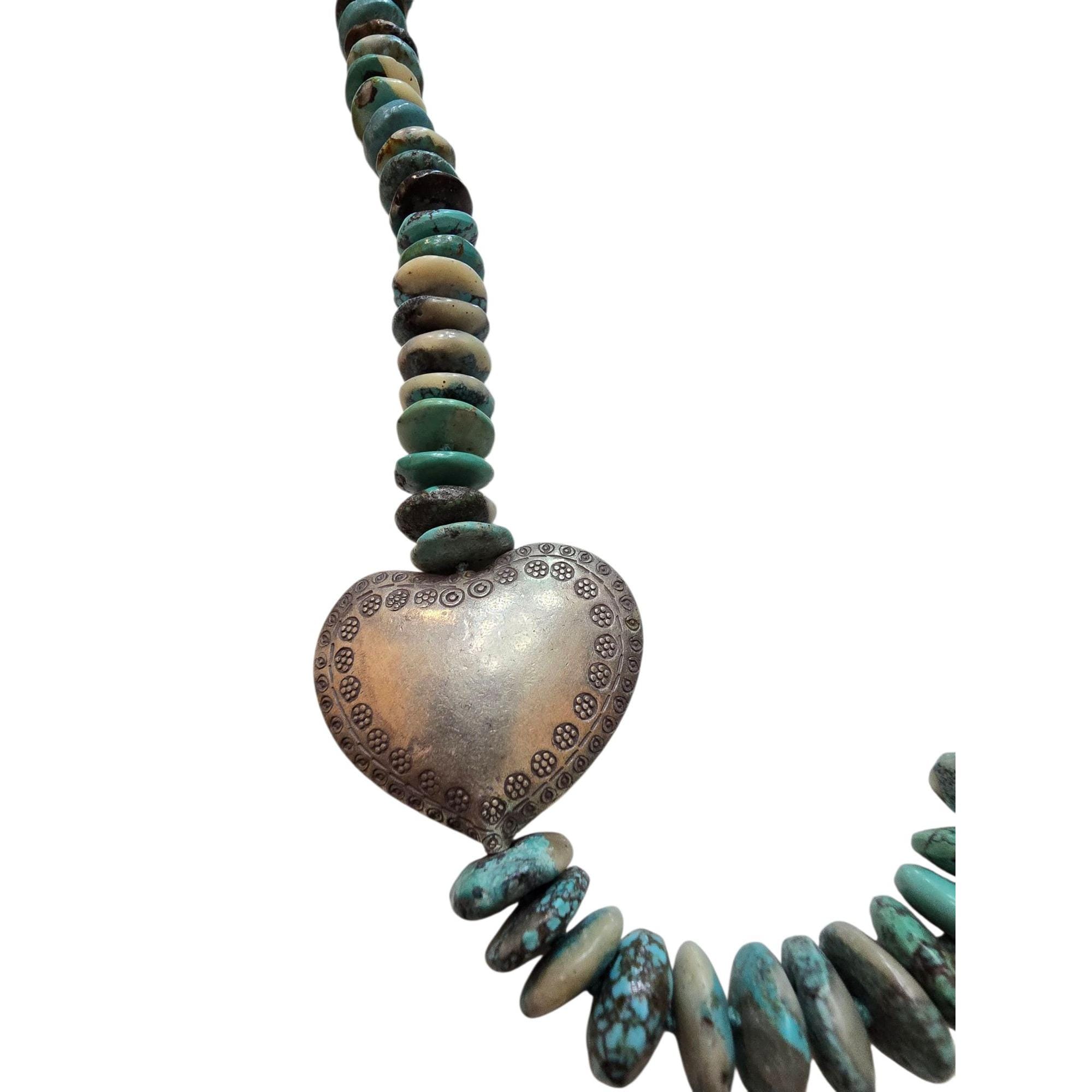 Sterling Hand Knotted Heishi Style Turquoise and Heart Necklace with Nice Toggle Closure (A9335)