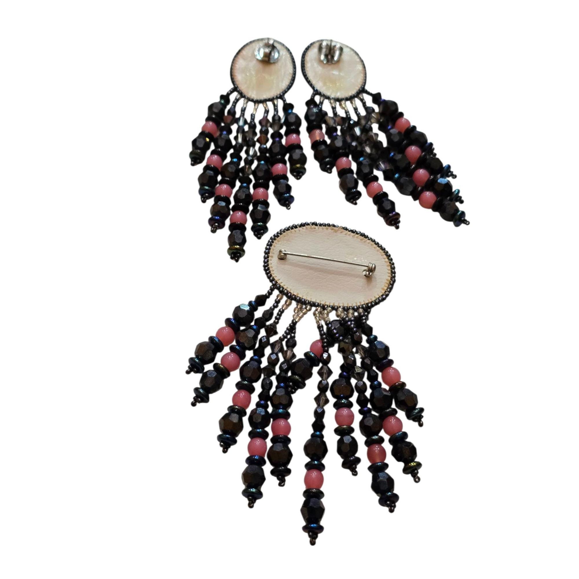 Size: 4" Brooch, 4" Pierced Earrings