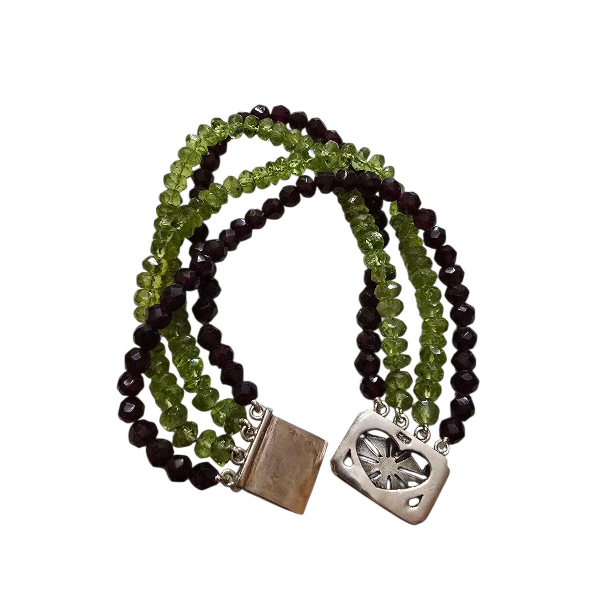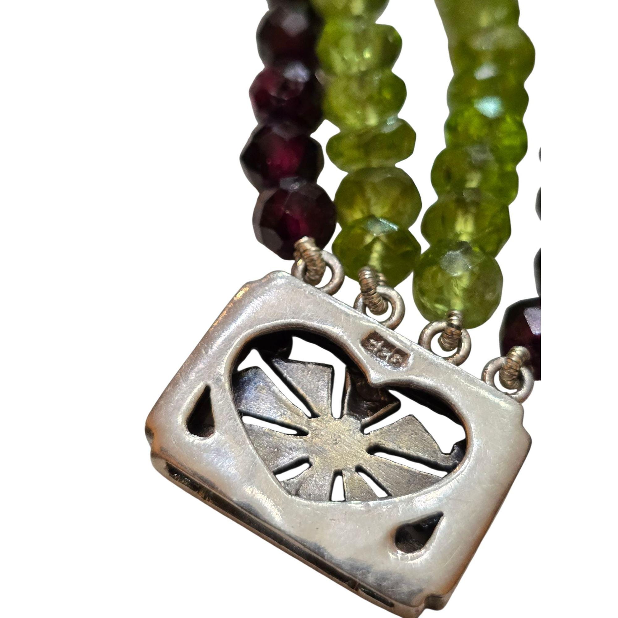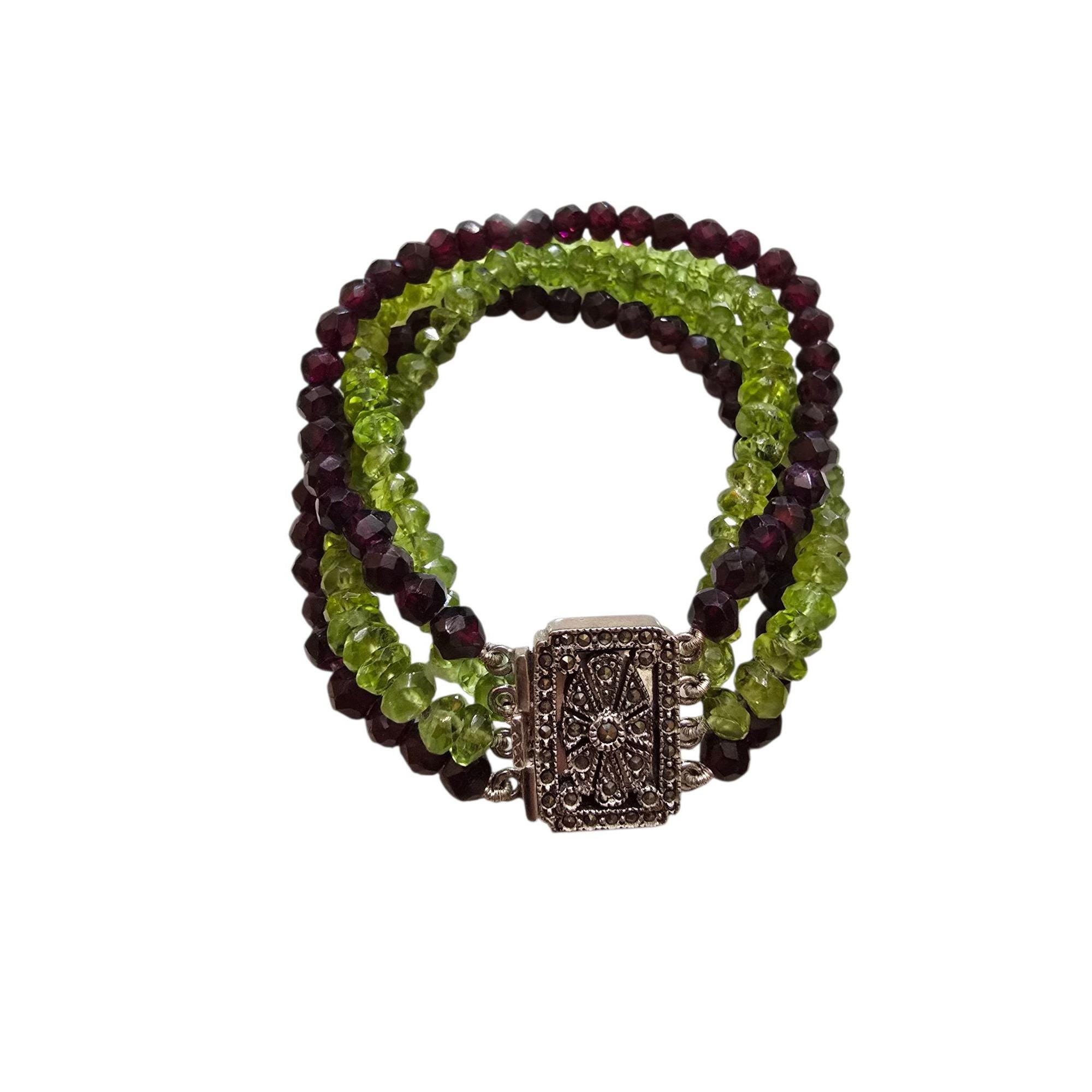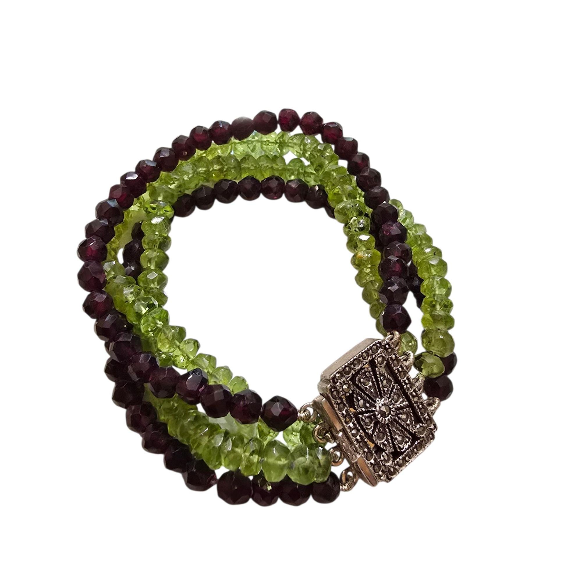 Stunning Sterling and 4-Strand Amethyst and Peridot Bracelet with Marcasite Fancy Push-in Clasp (A9334)