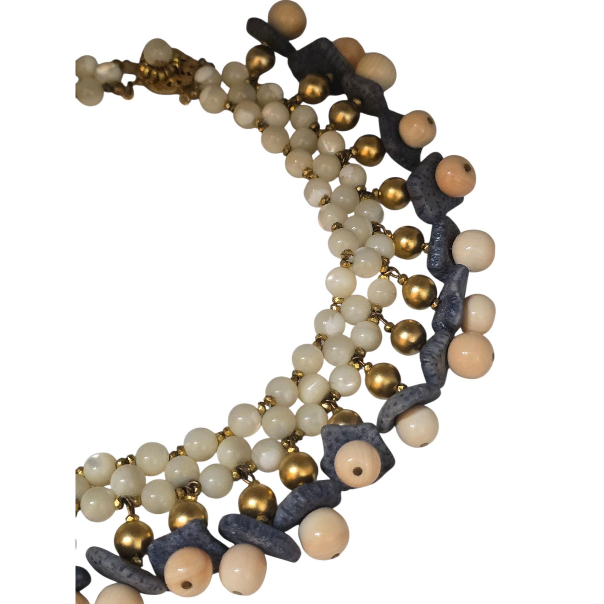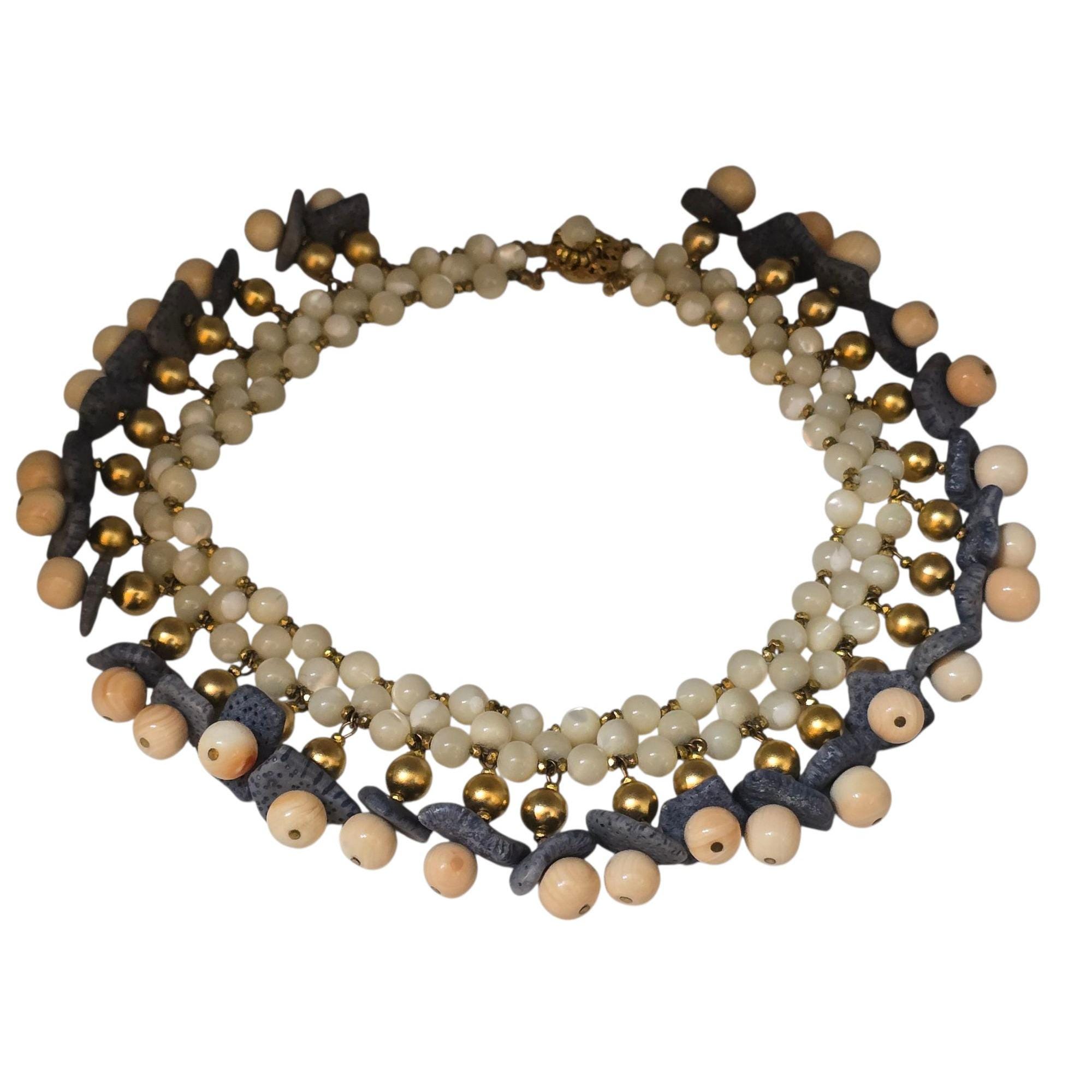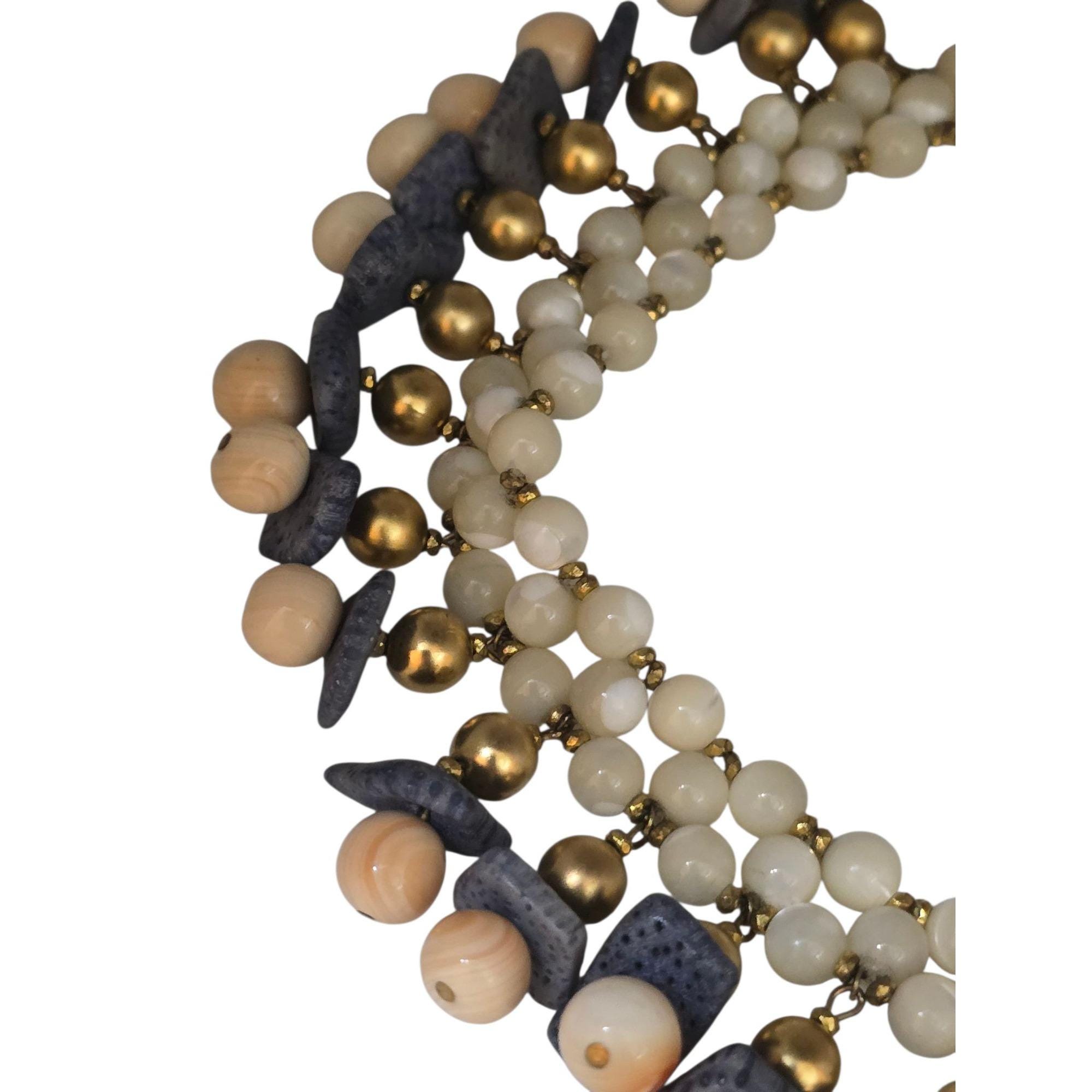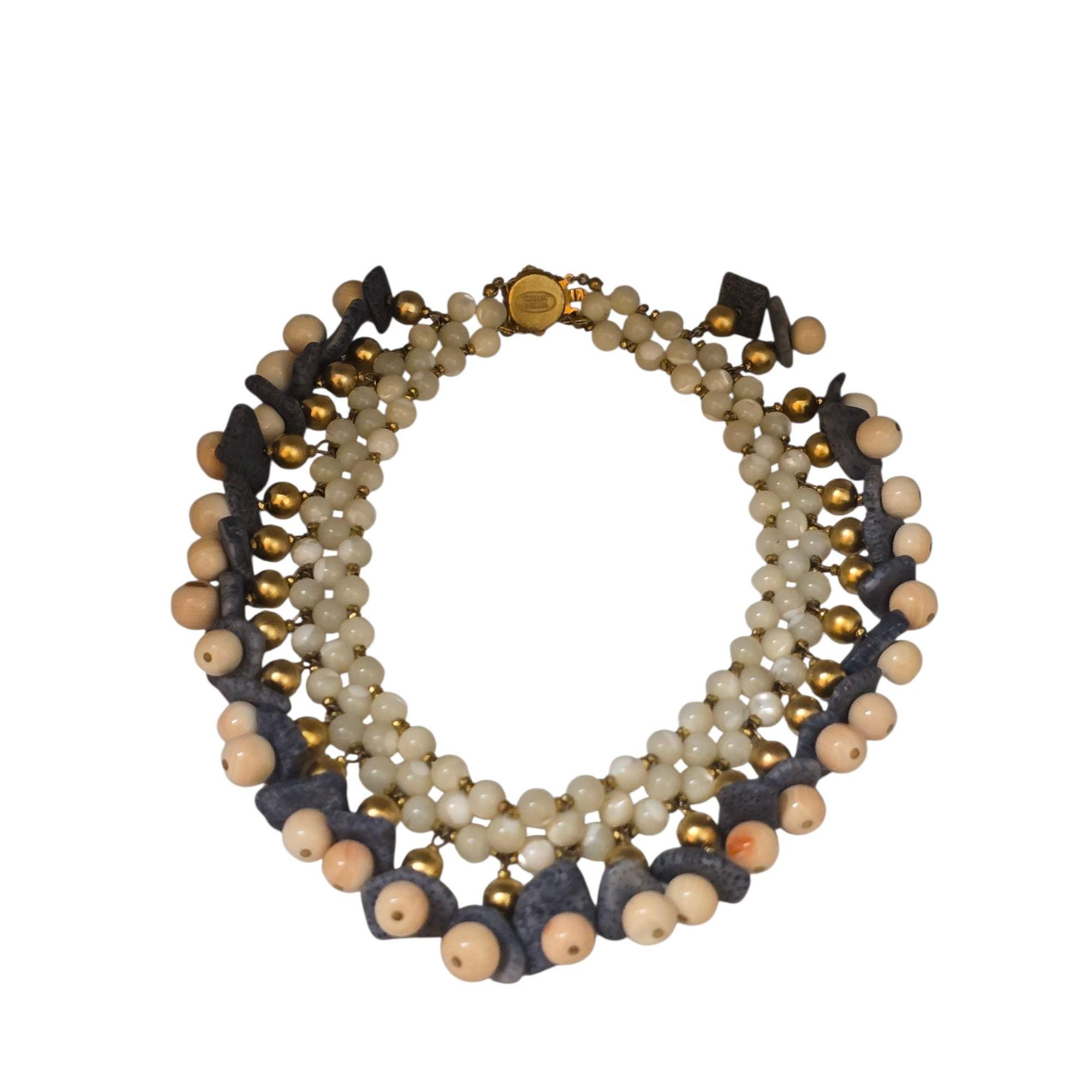 Vintage Signed Miriam Haskell Semi Precious and Glass Bib Necklace (A9320)