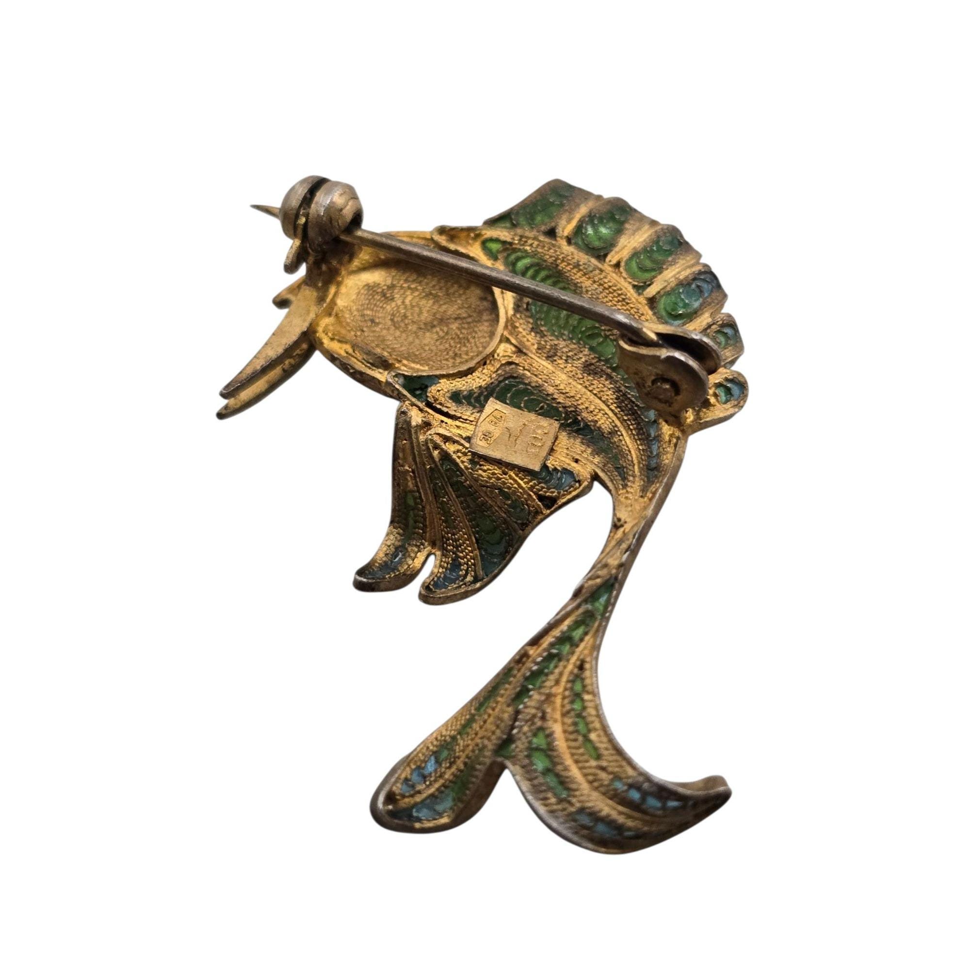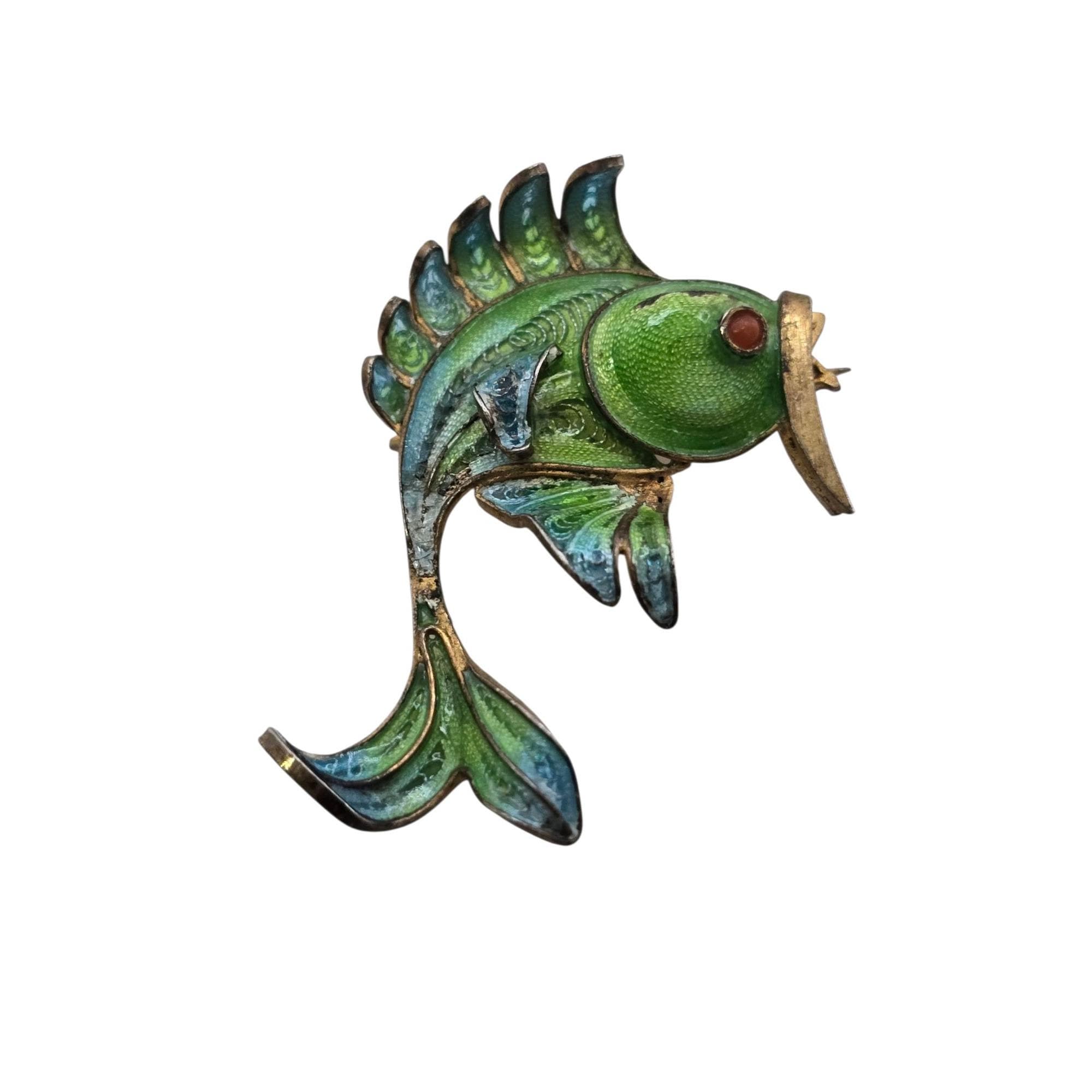 Antique Signed 800 Silver Enamel Fish Brooch (A9324)