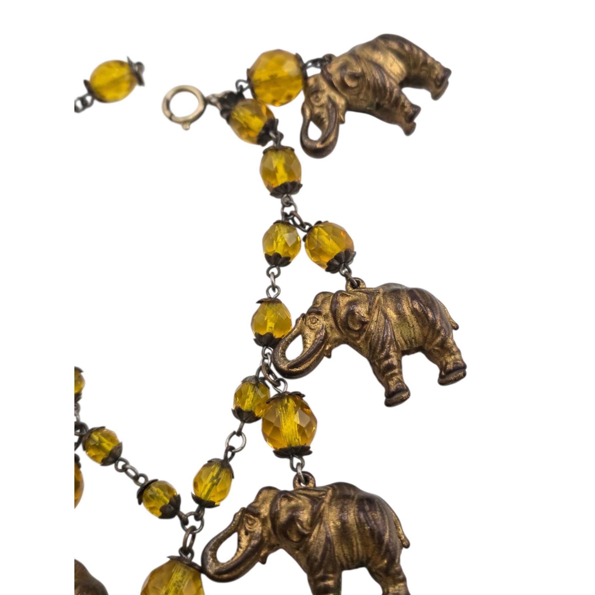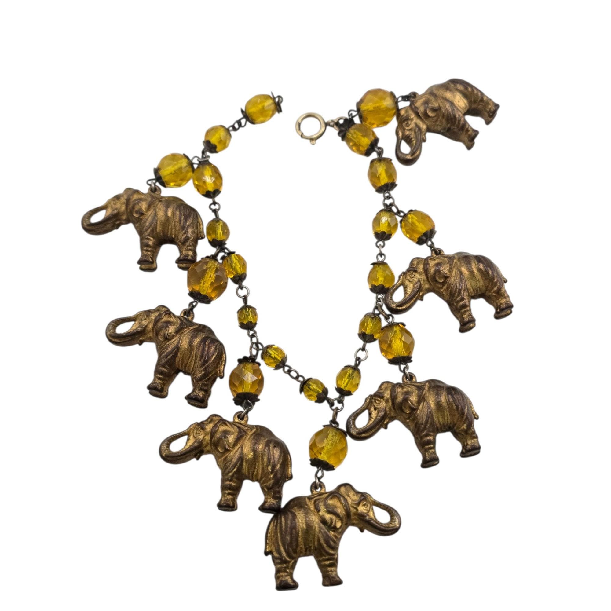 Vintage Crystal and Puffy Brass Elephants Bracelet (A9319)