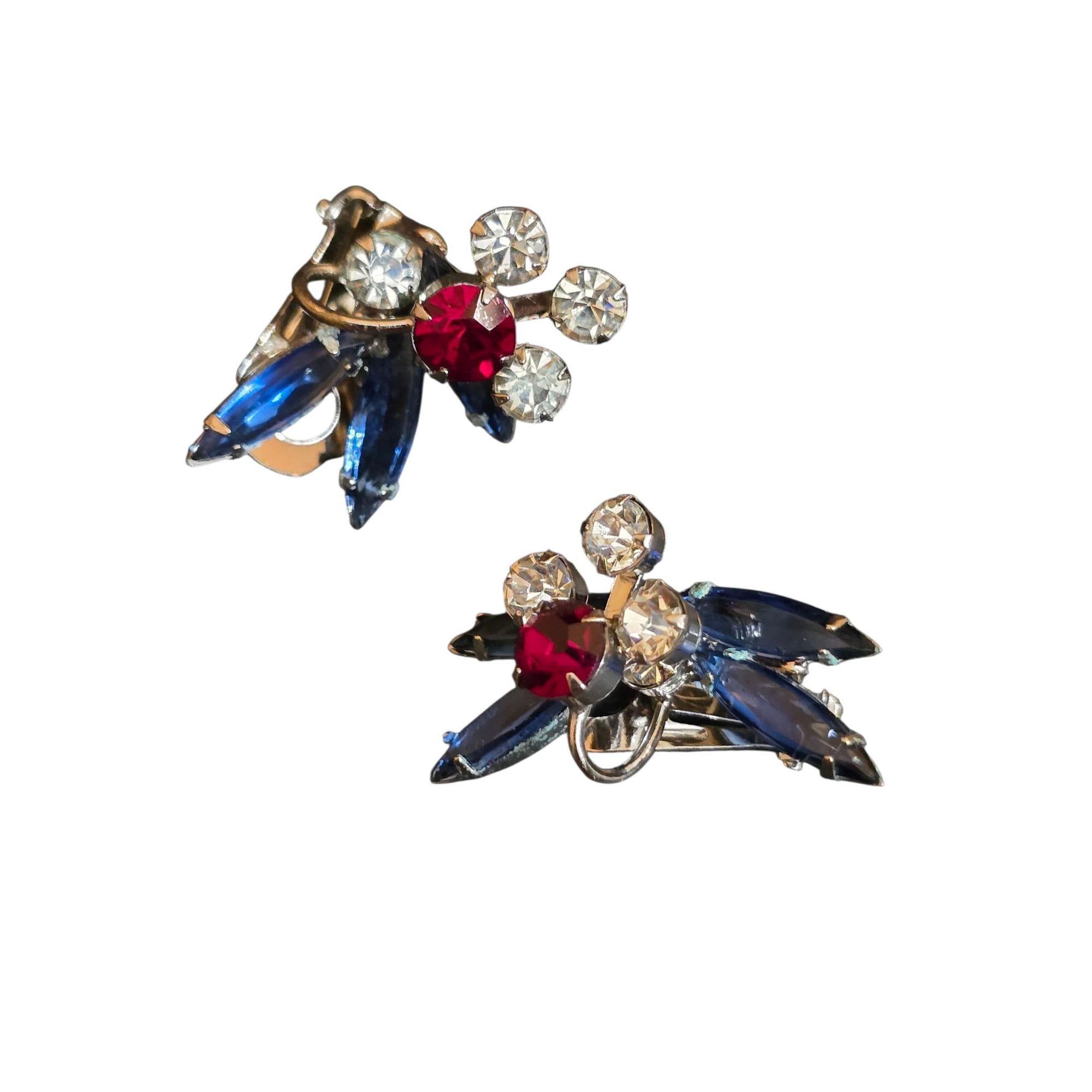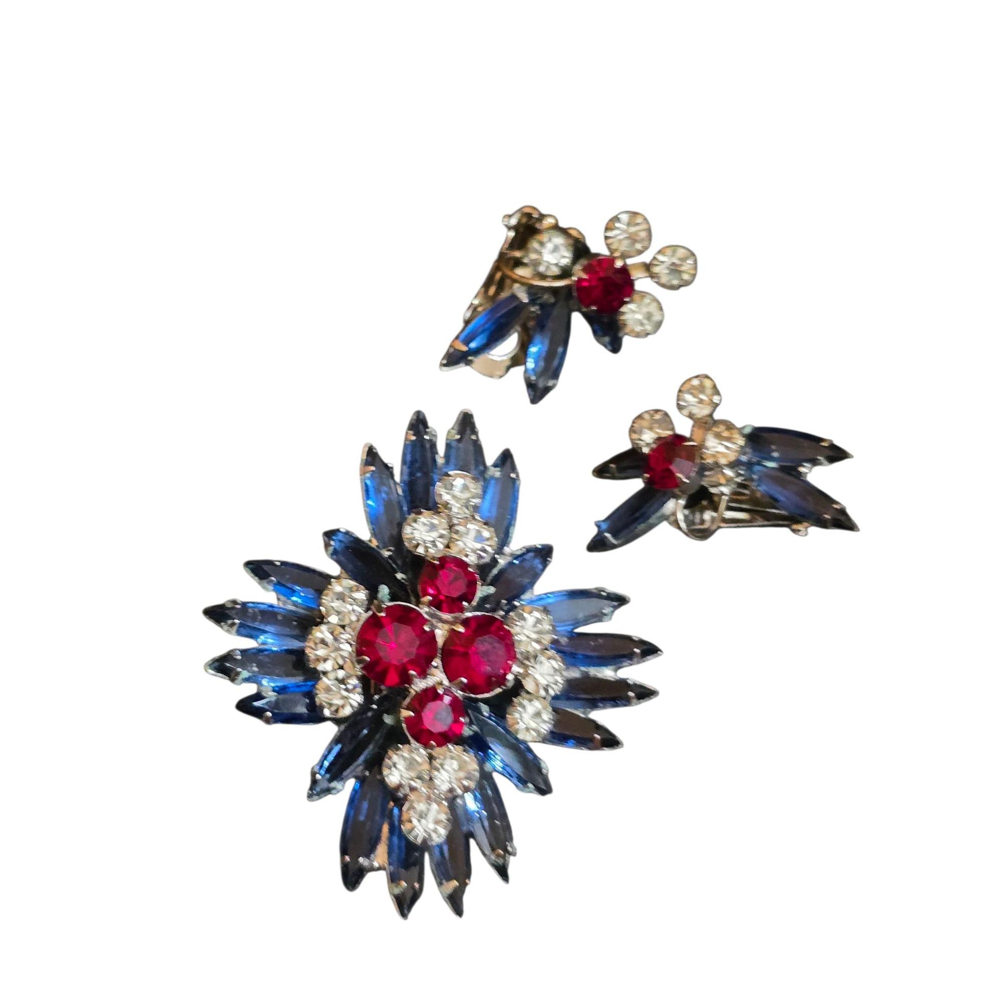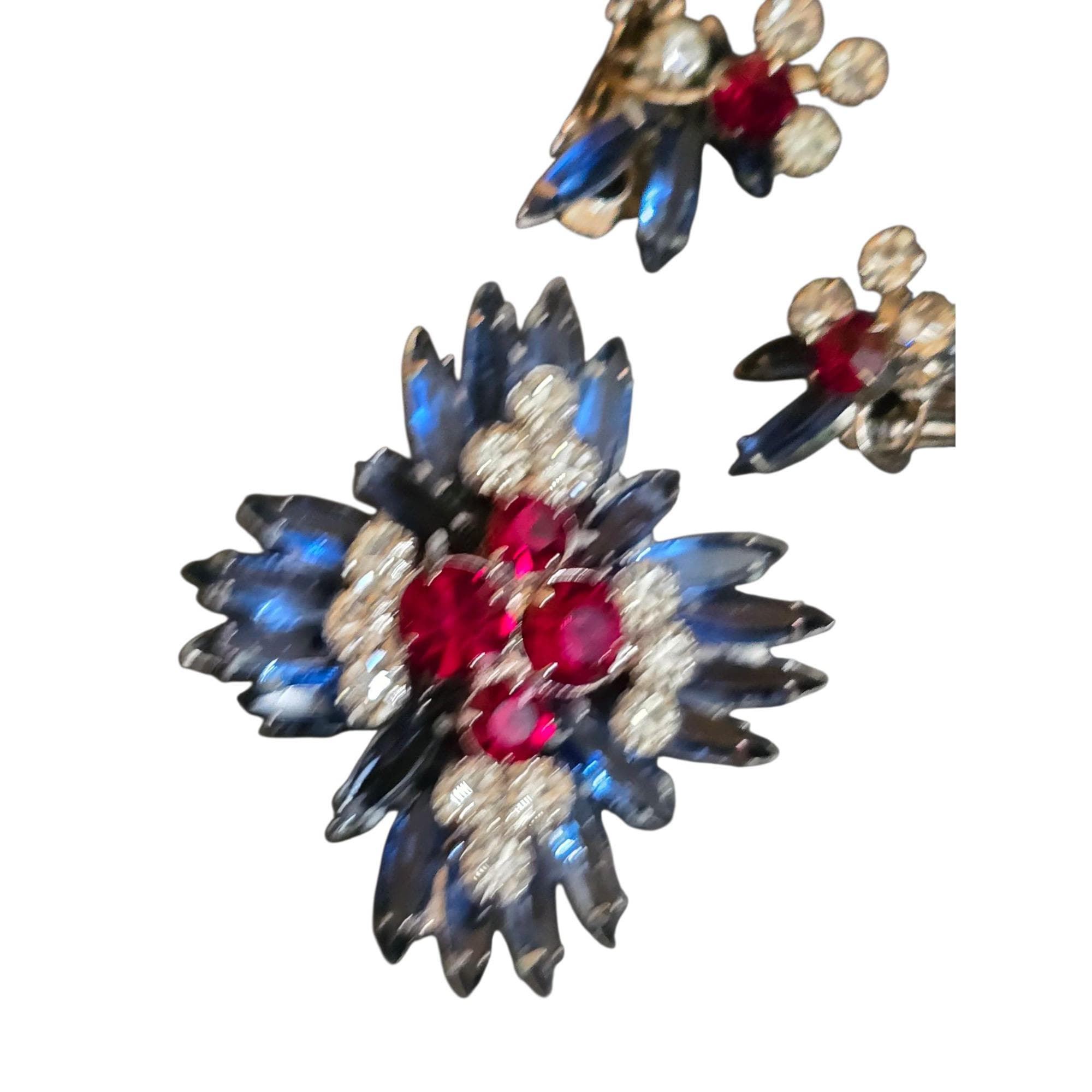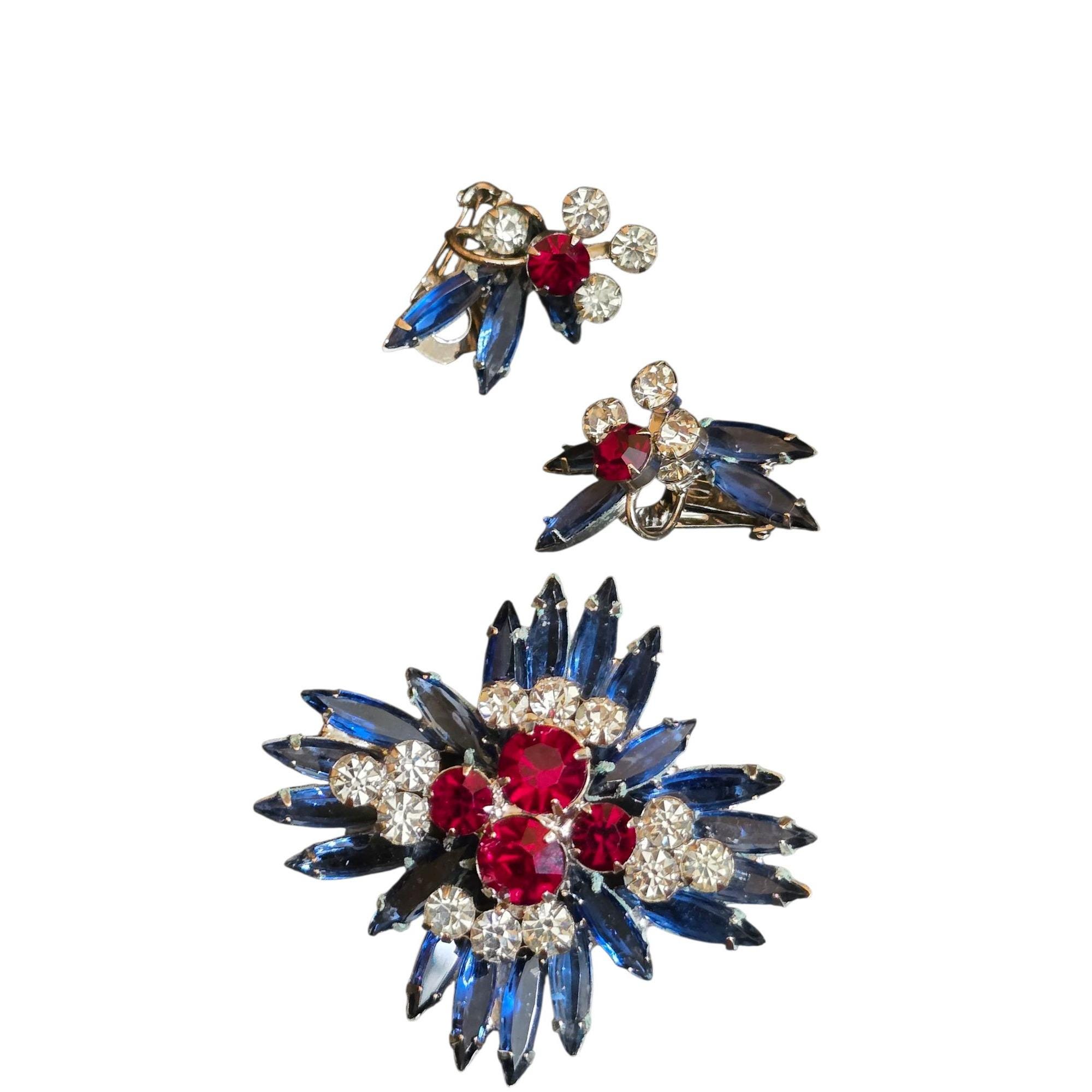 Vintage Rare Juliana Red White and Blue Rhinestone Brooch Set (A9302)