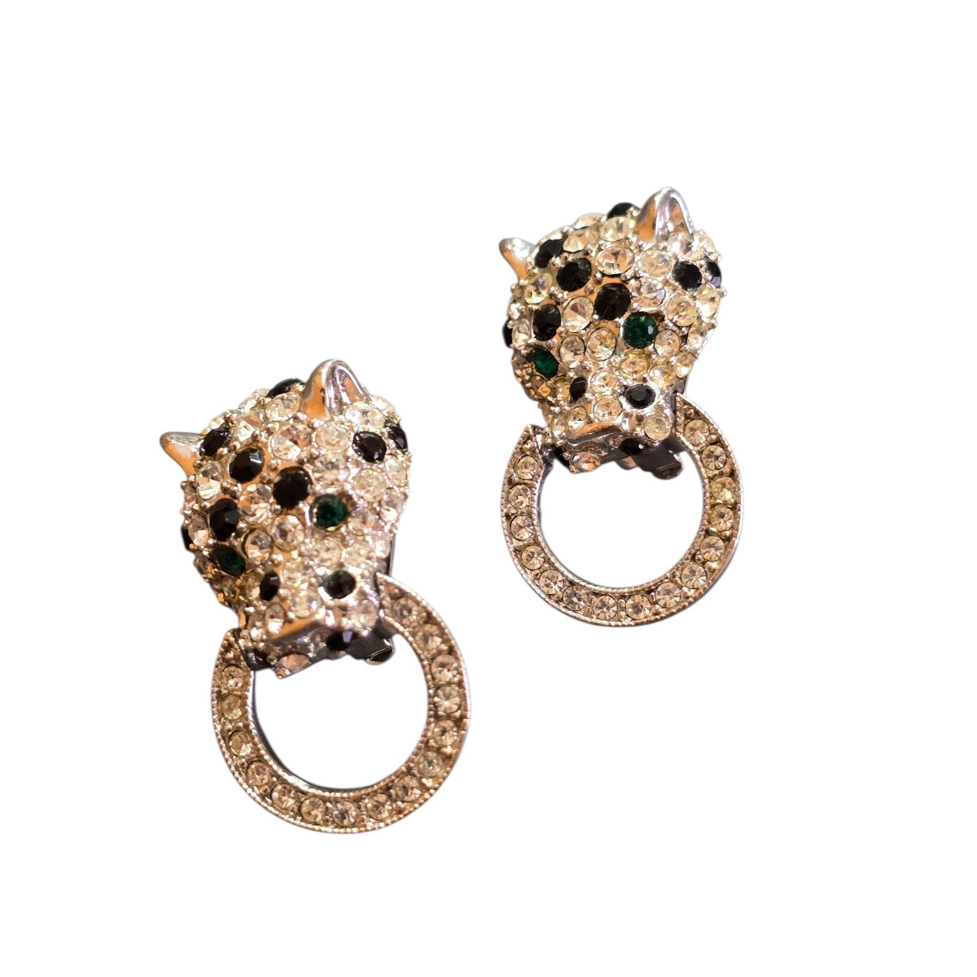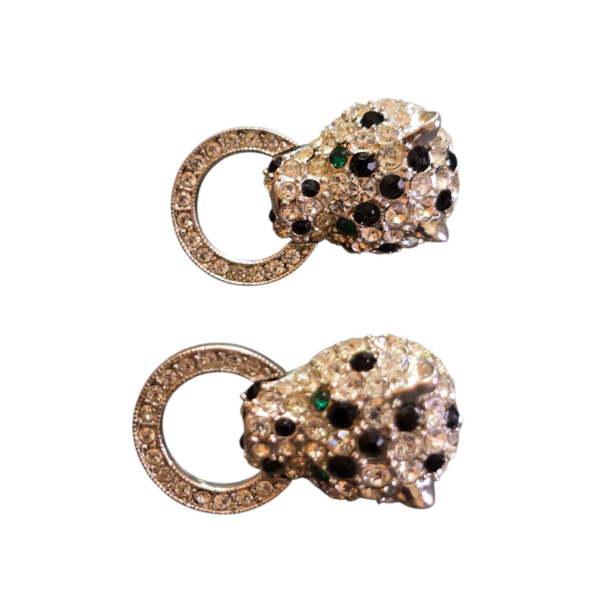 Vintage KJL NR Pave Rhinestone Panther Clip Earrings (A9309)