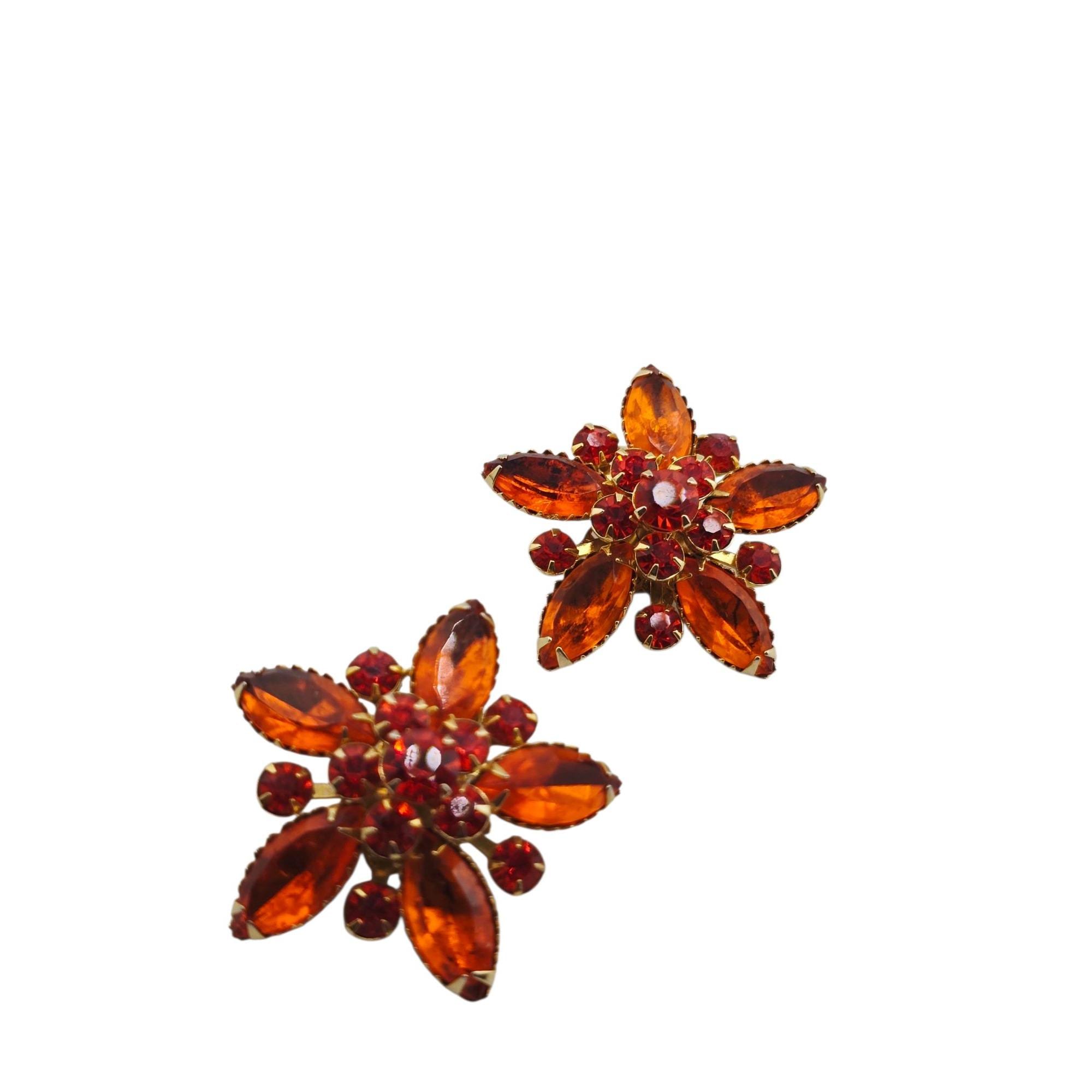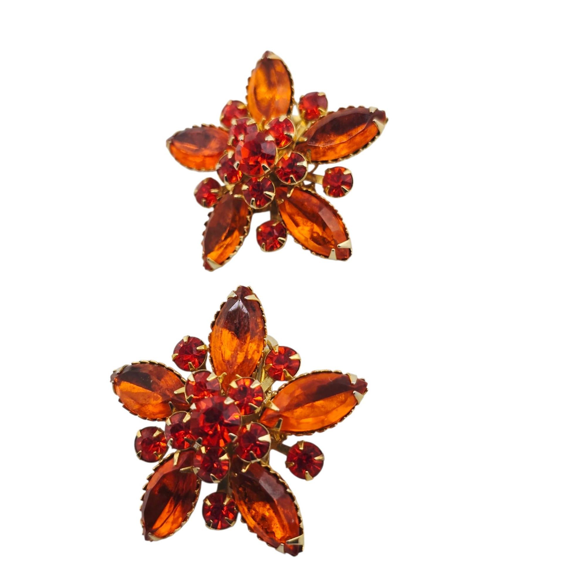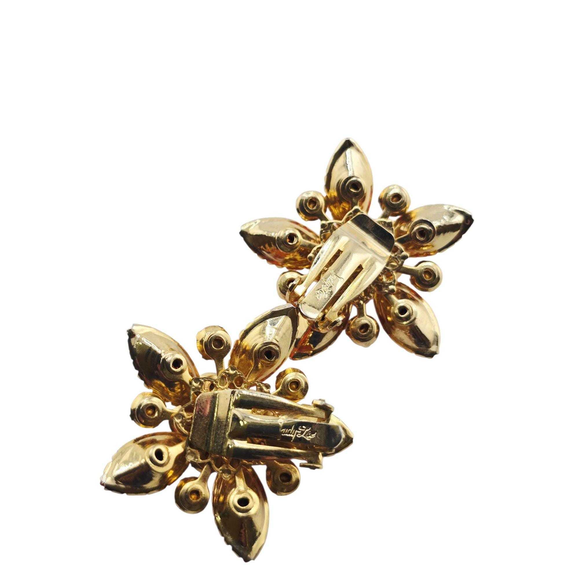 Vintage Signed Judy Lee Flower Rhinestone Earrings (A9284)
