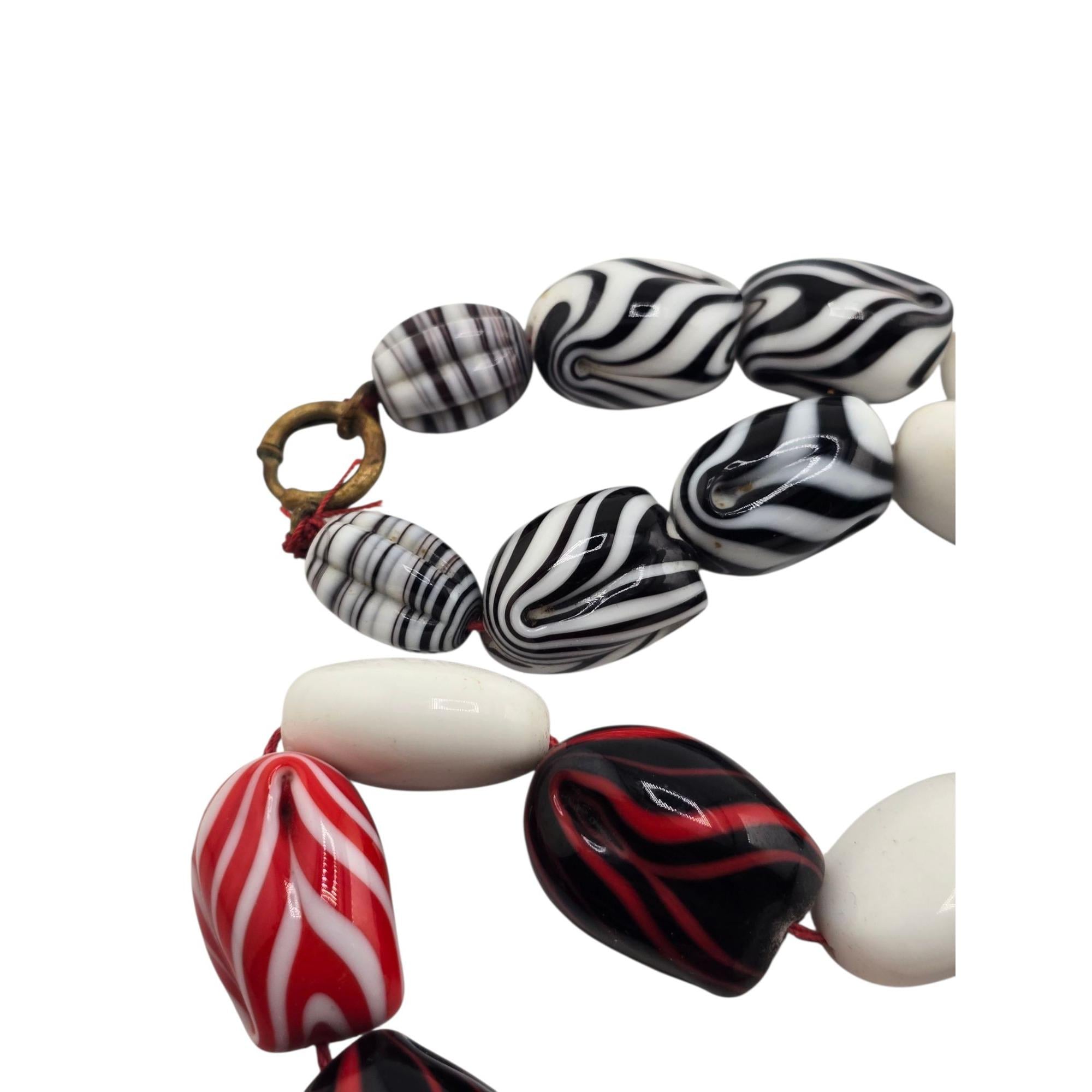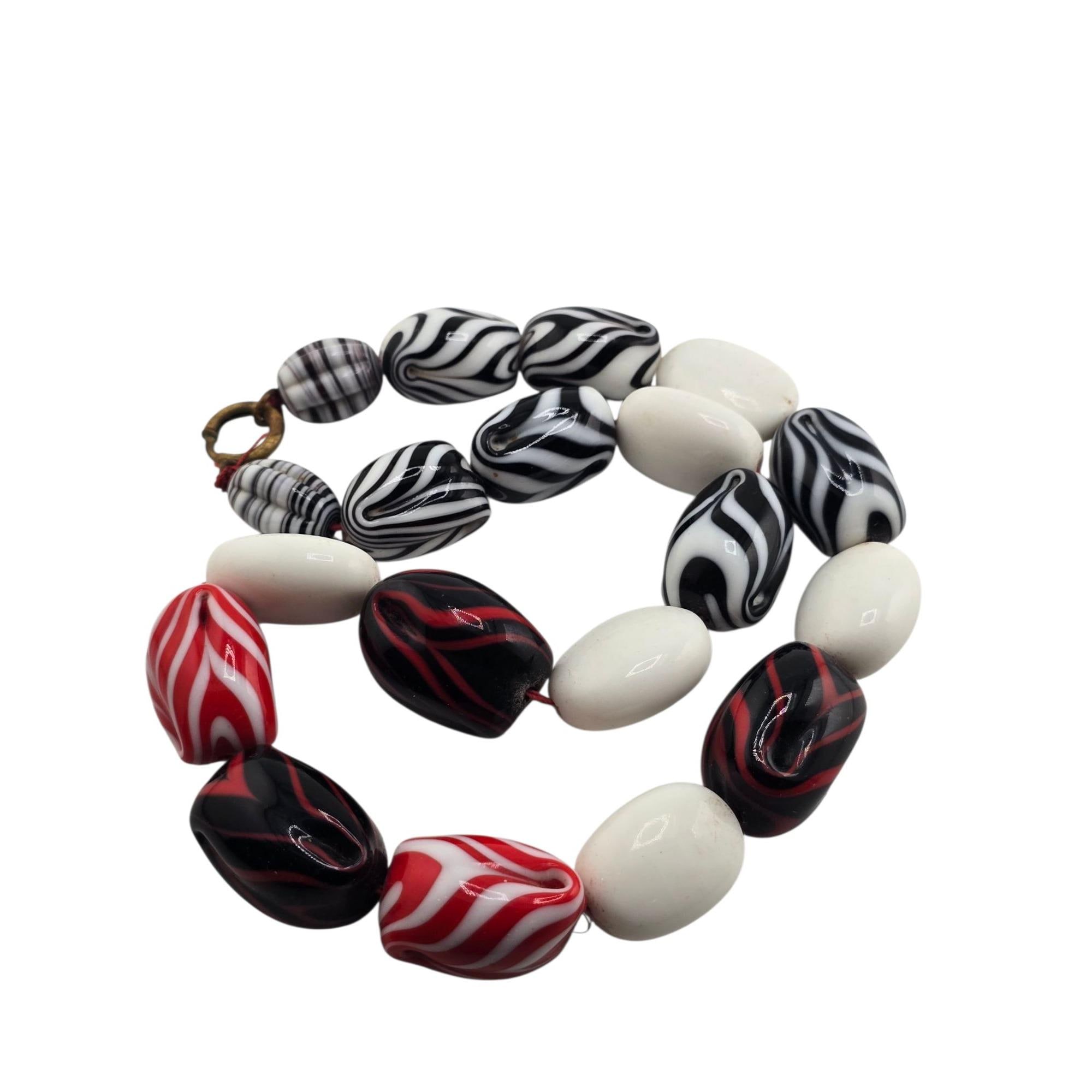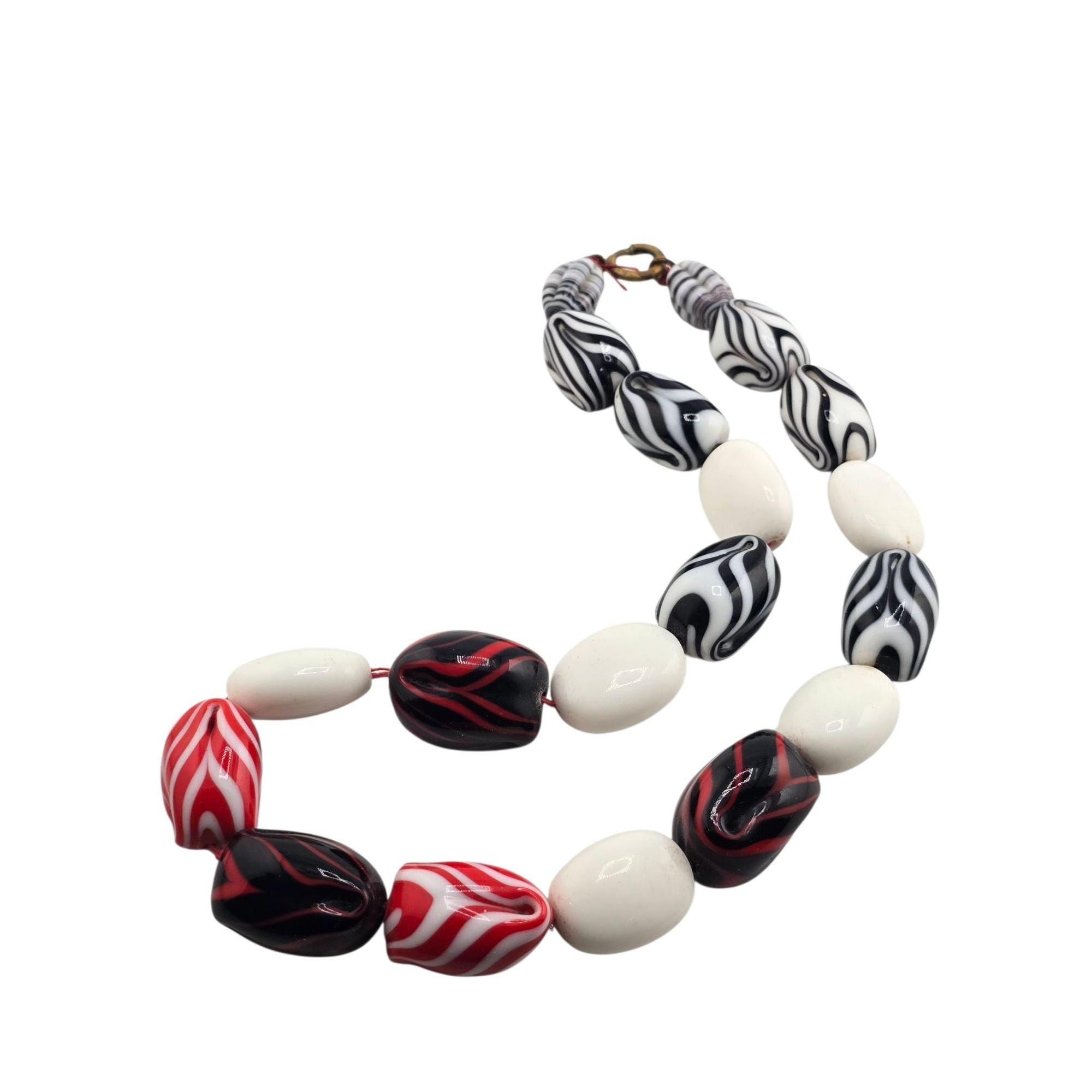 Antique Very Heavy Fluted Art Glass Necklace (A9289)