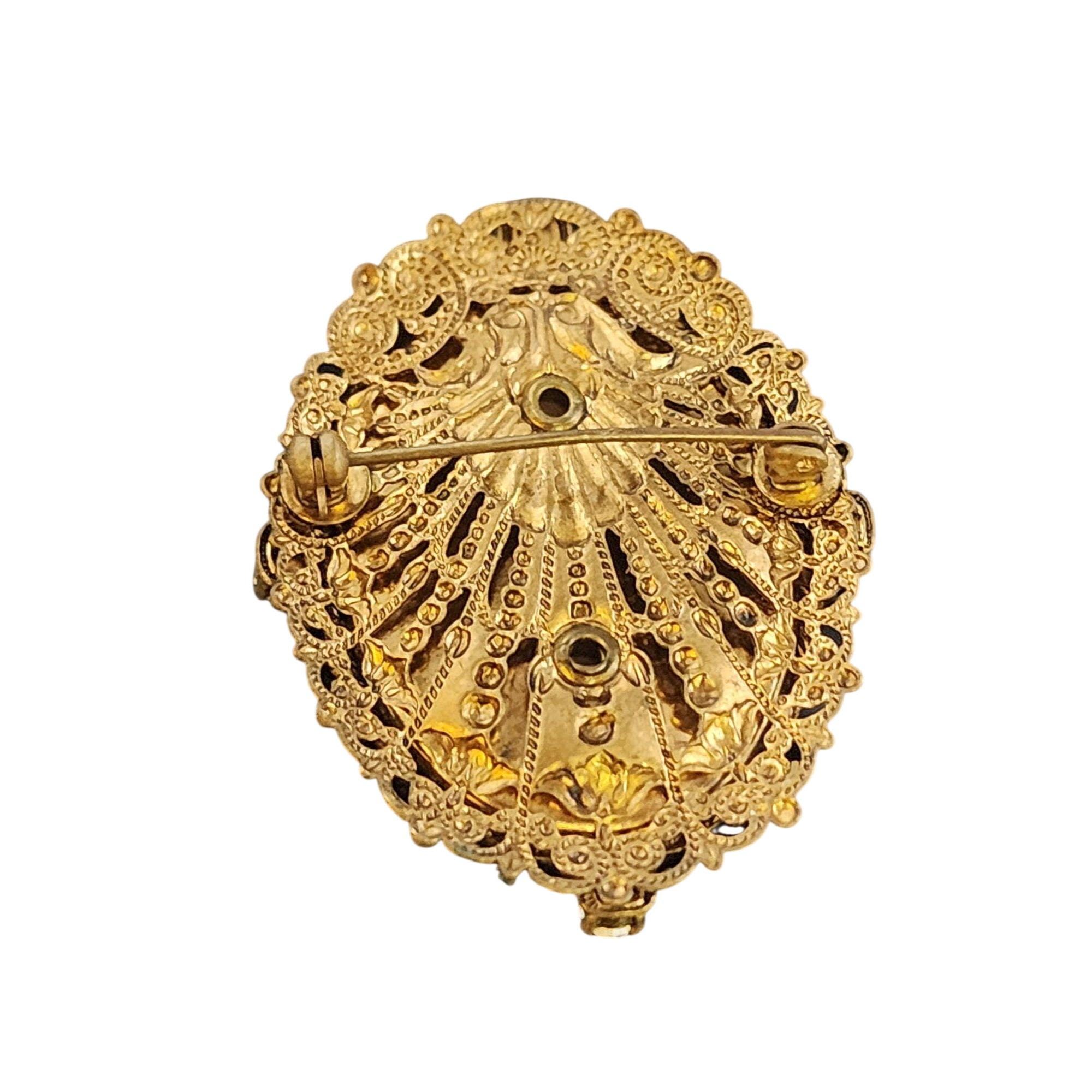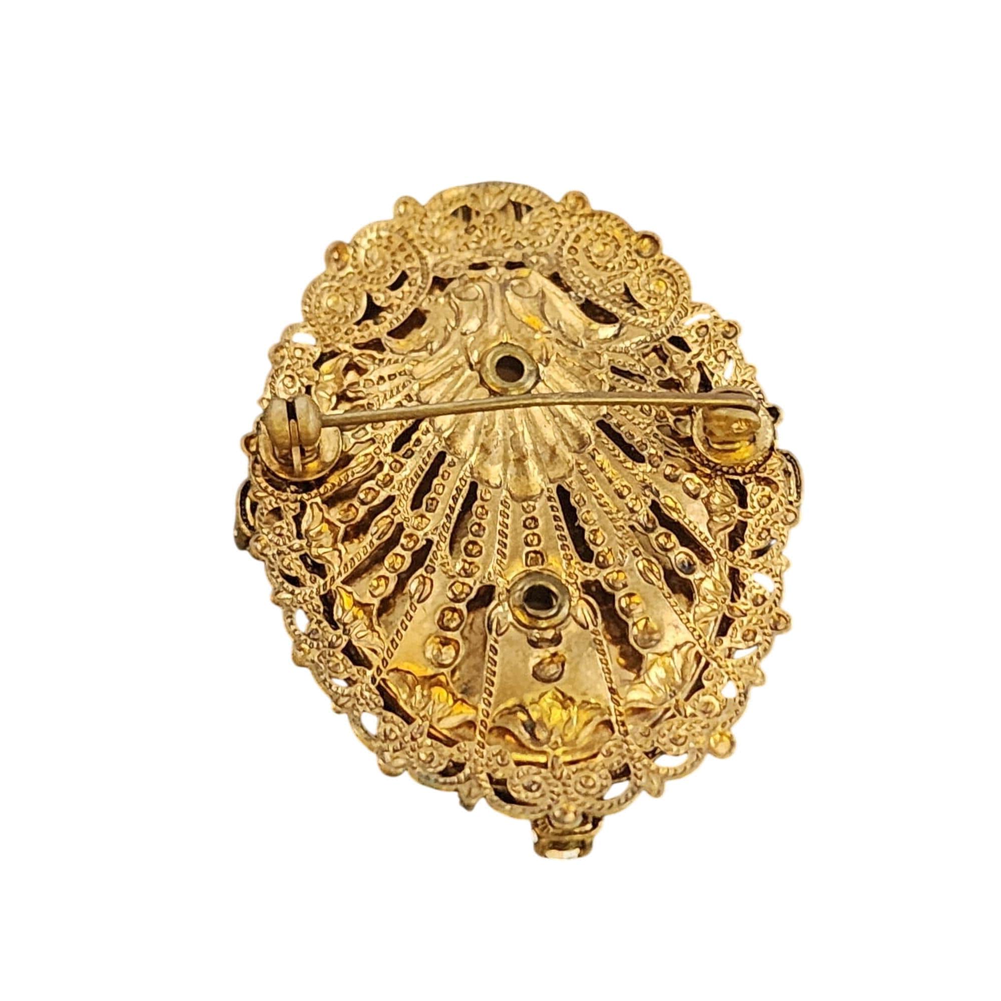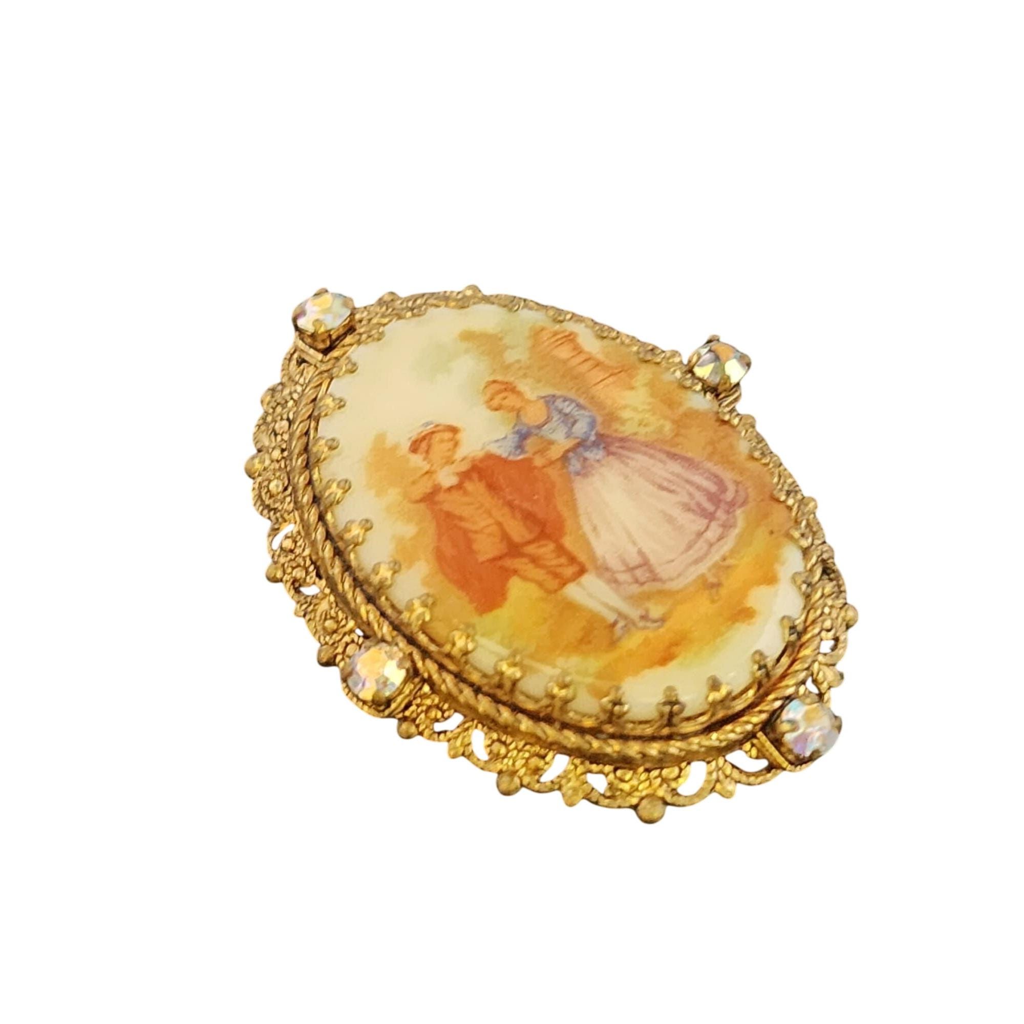West Germany Fragonard Porcelain Rhinestone Brooch (A5704)