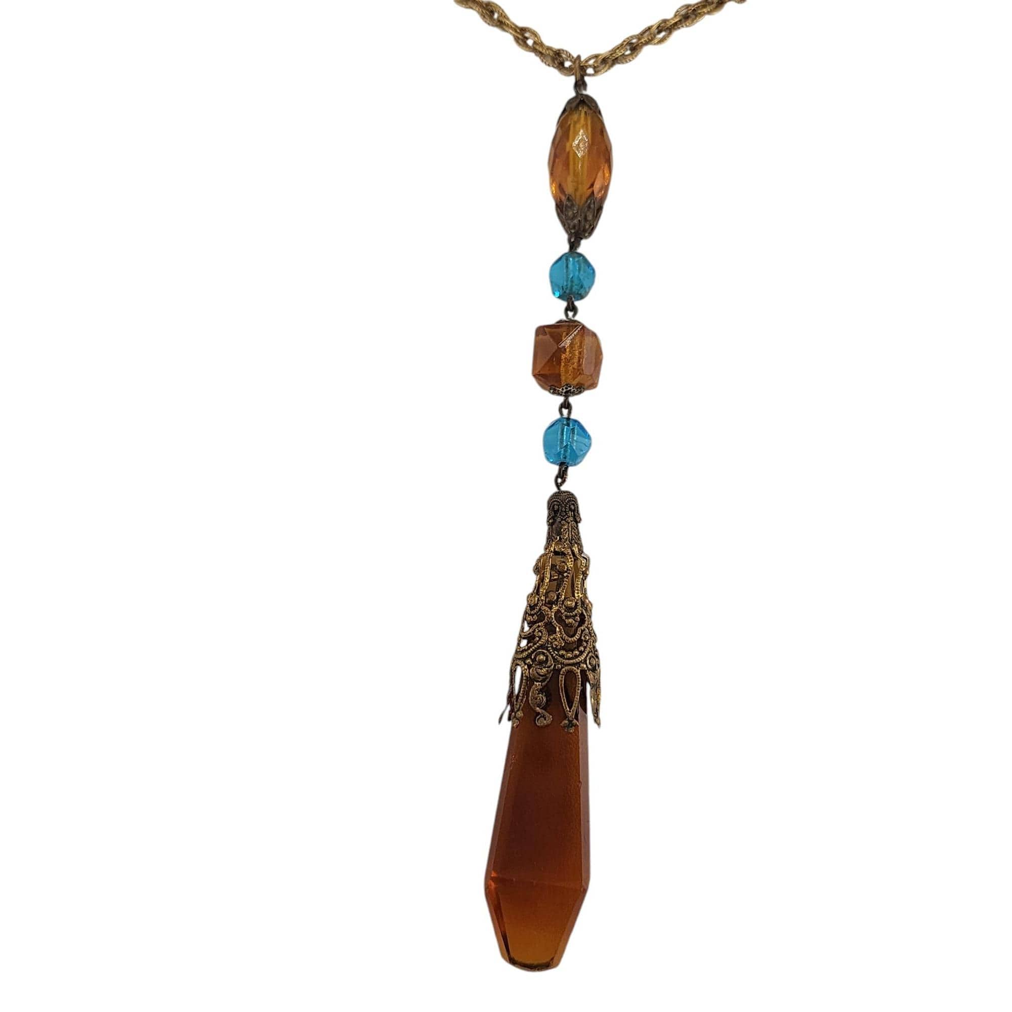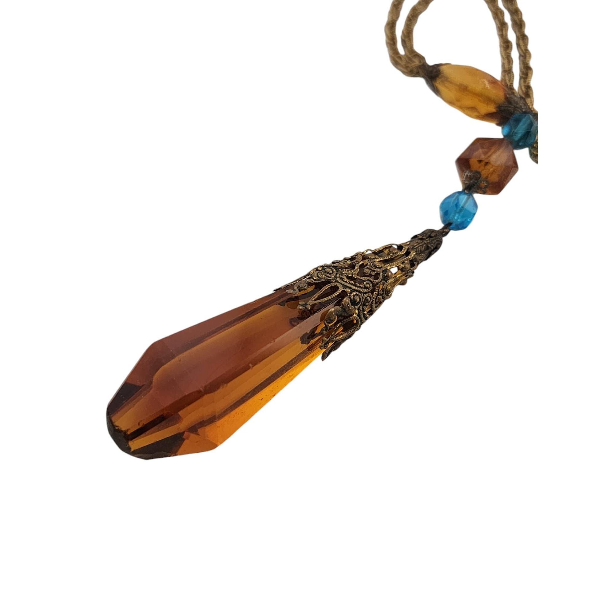 Interesting Vintage Glass Pendant Necklace (A5685)