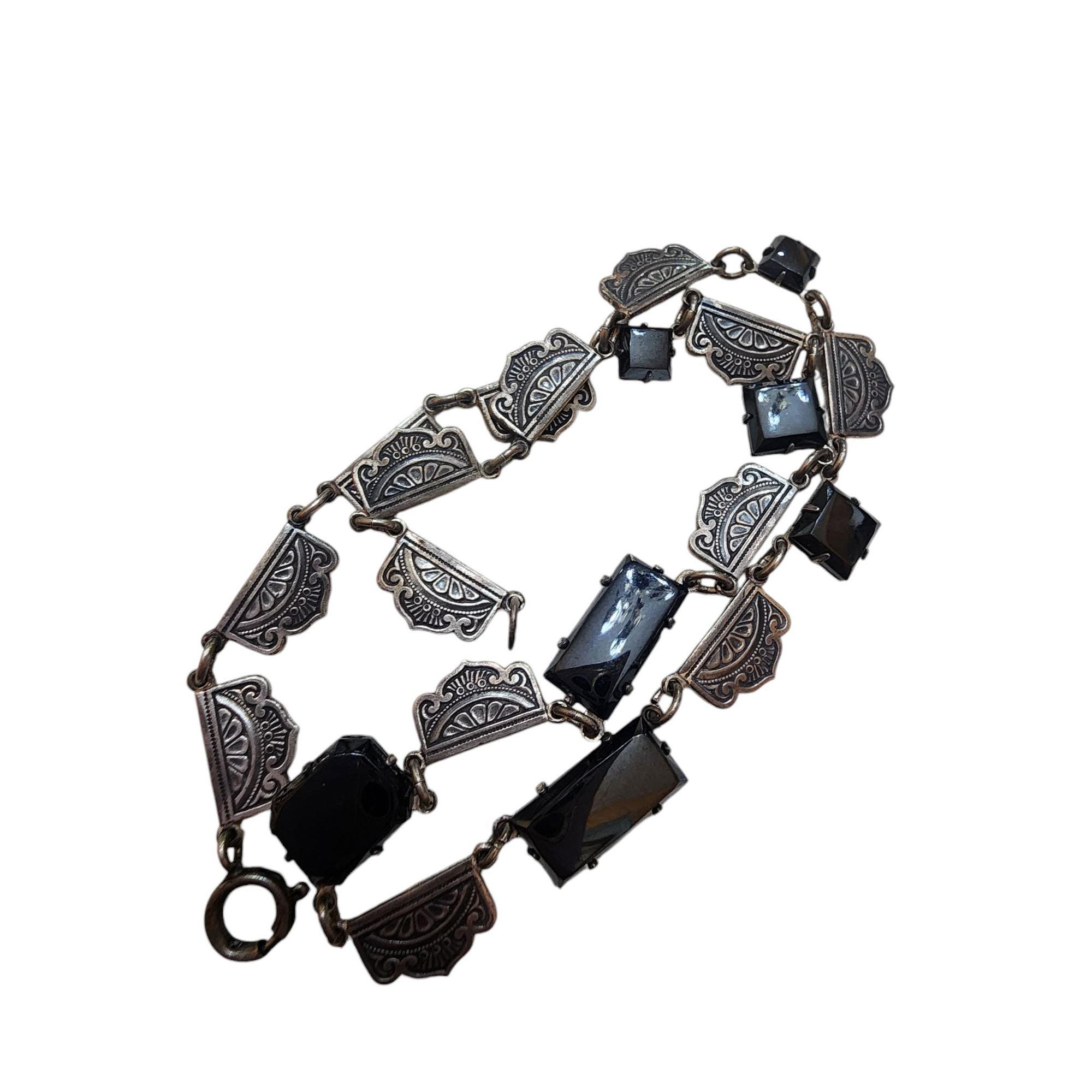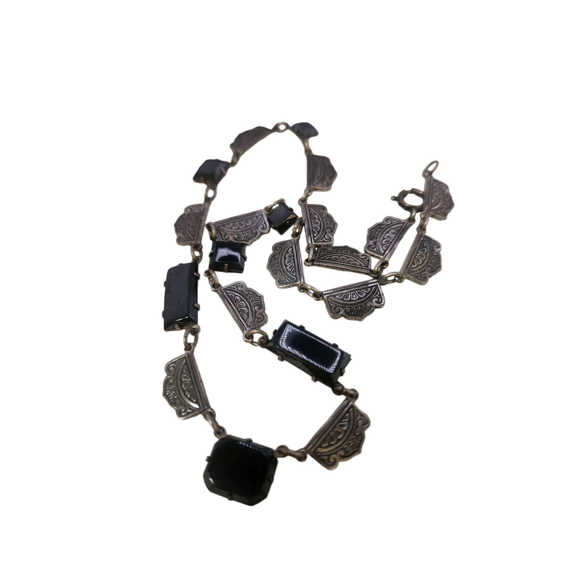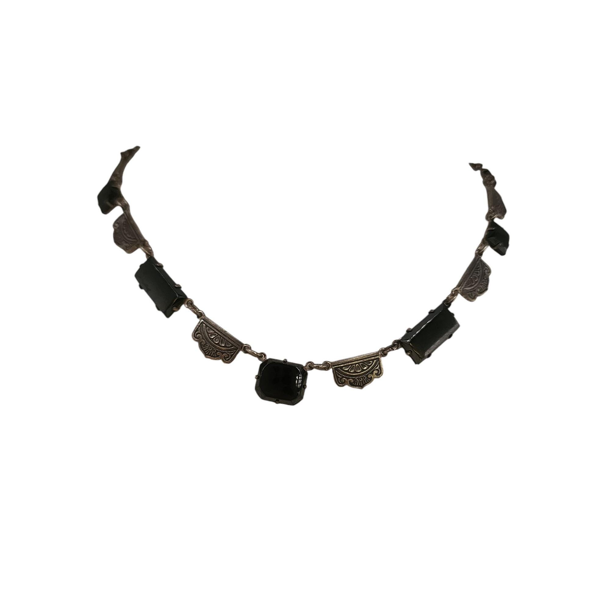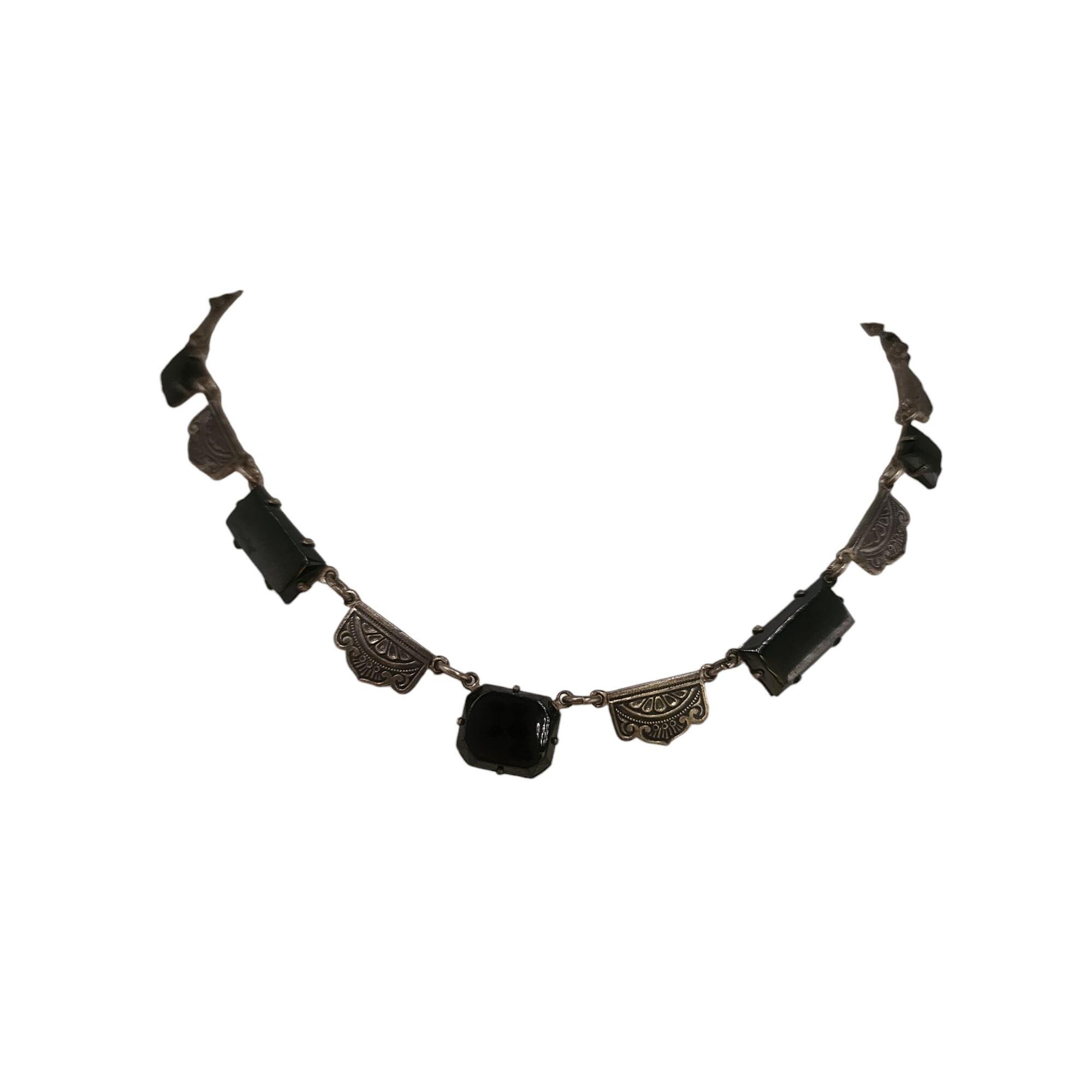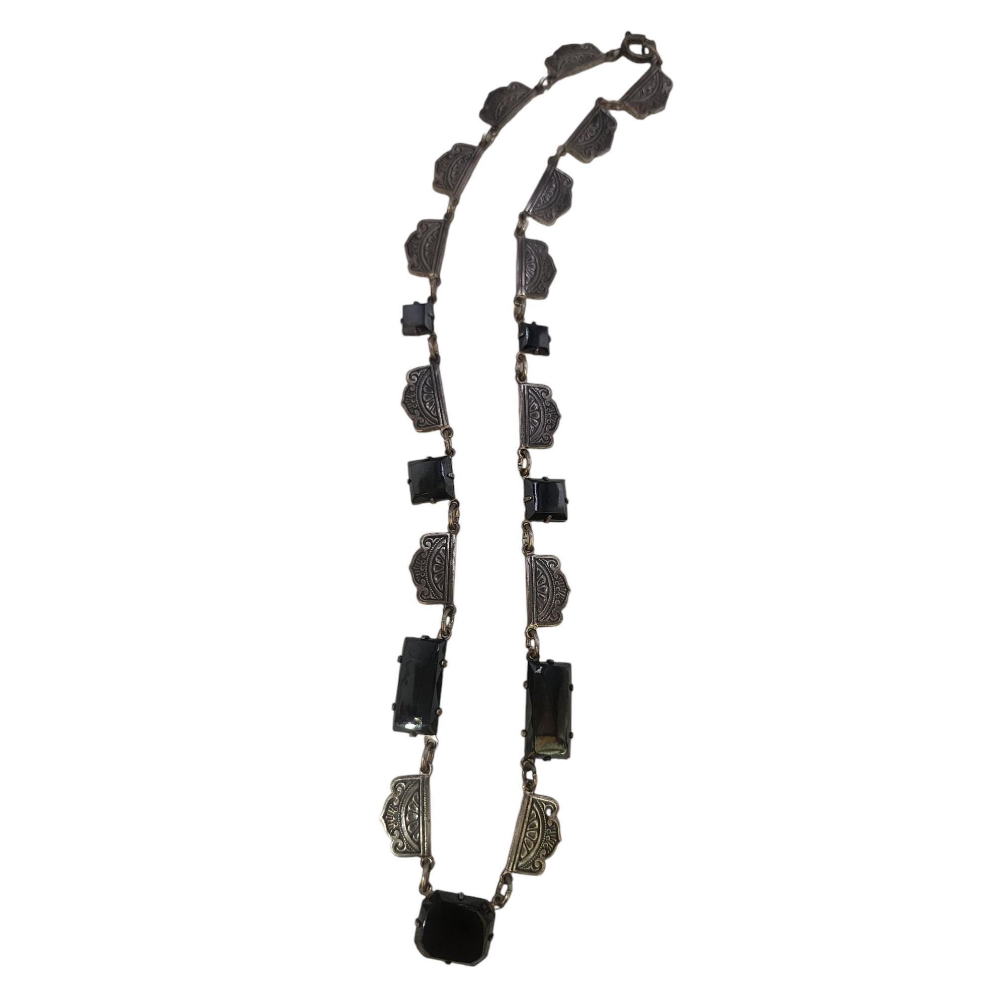 Antique Art Deco & Hematite Glass Necklace (A5760)