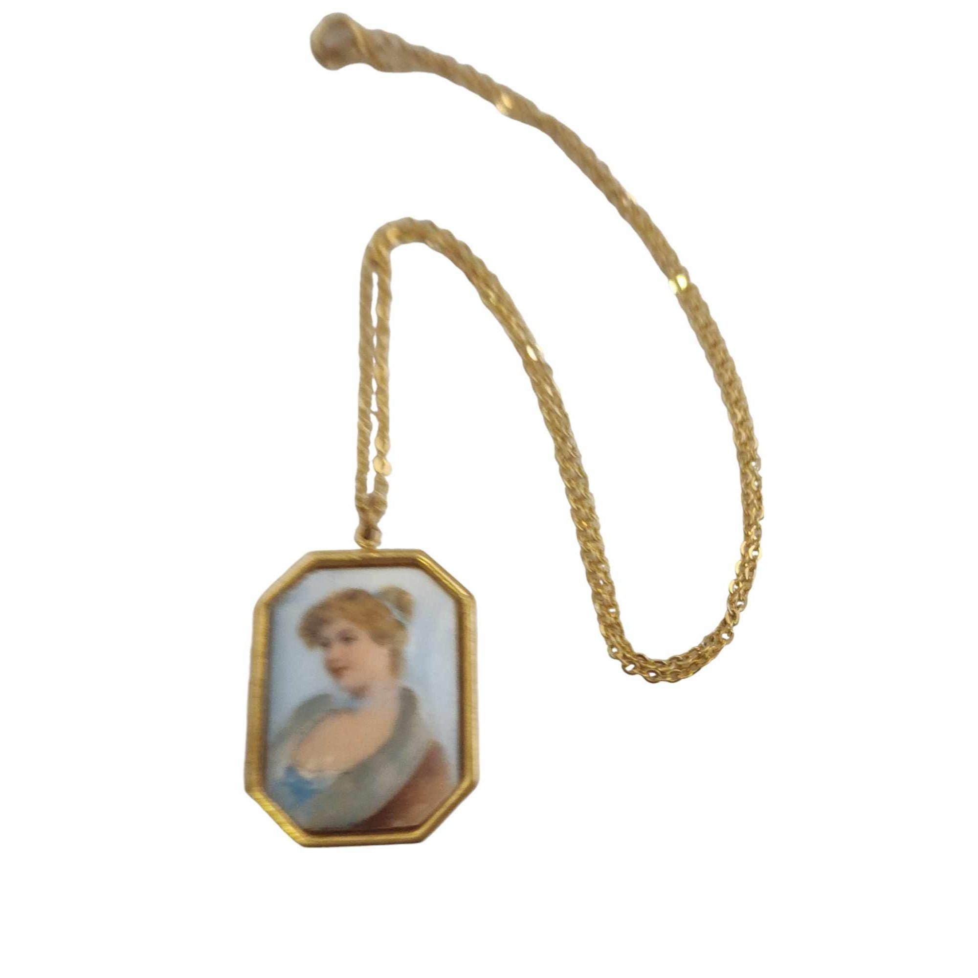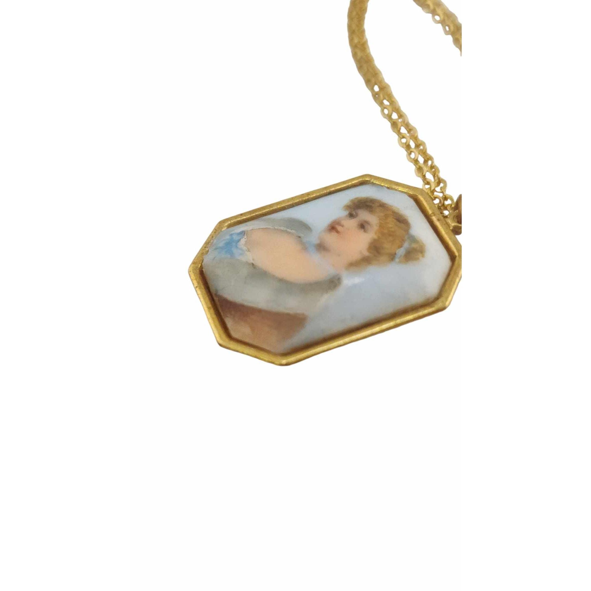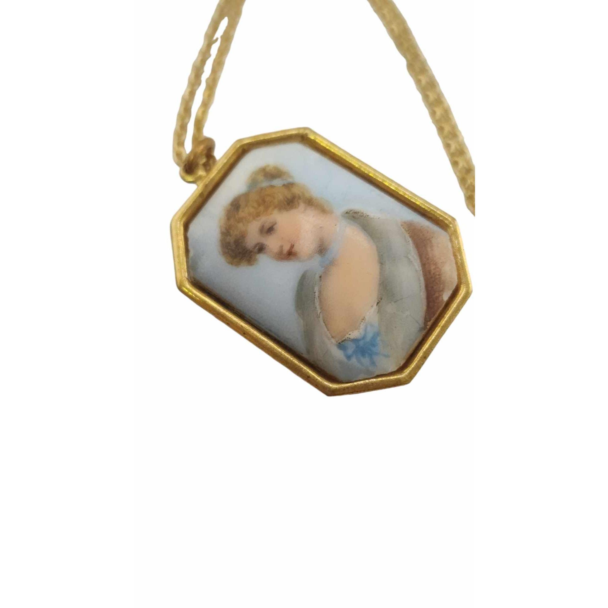 Vintage Pastel Porcelain Portrait Necklace (A5754)