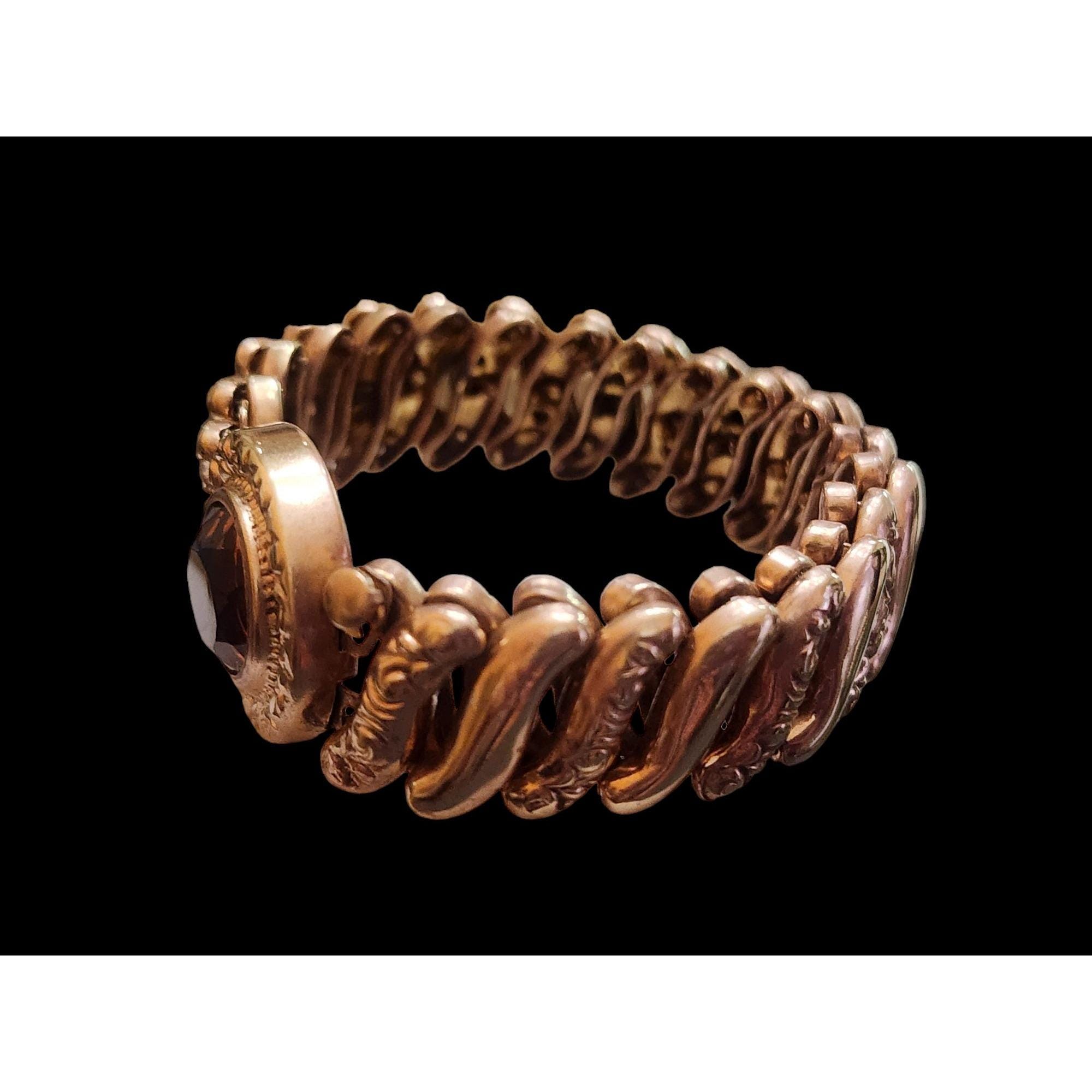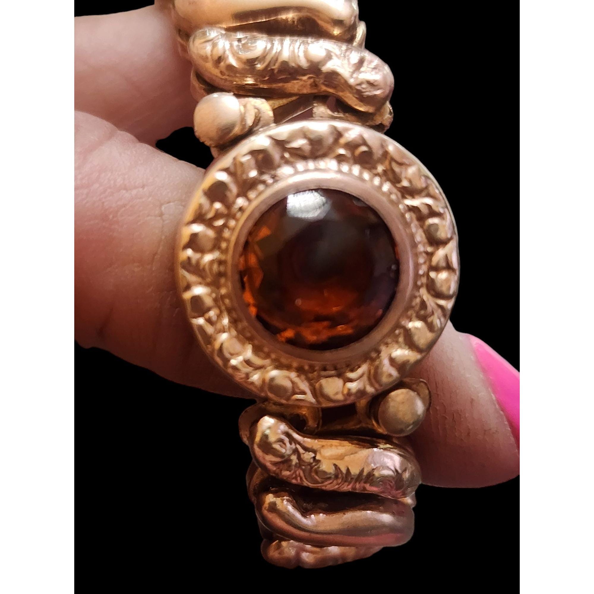 Vintage Topaz Faceted Glass Sweetheart Expansion Bracelet (A4775)