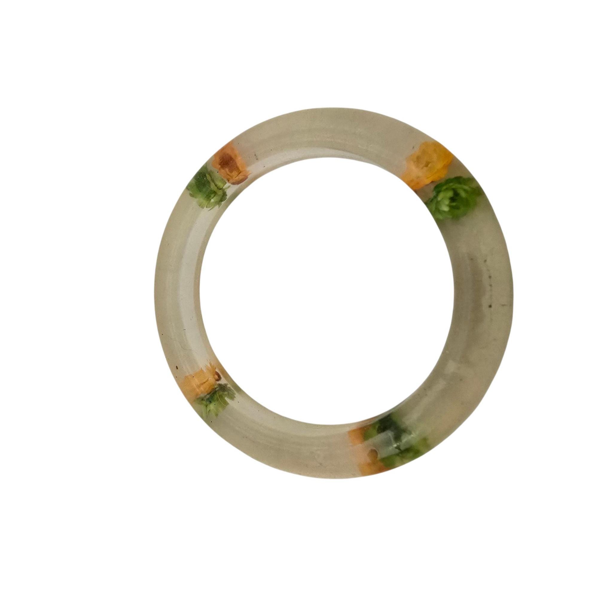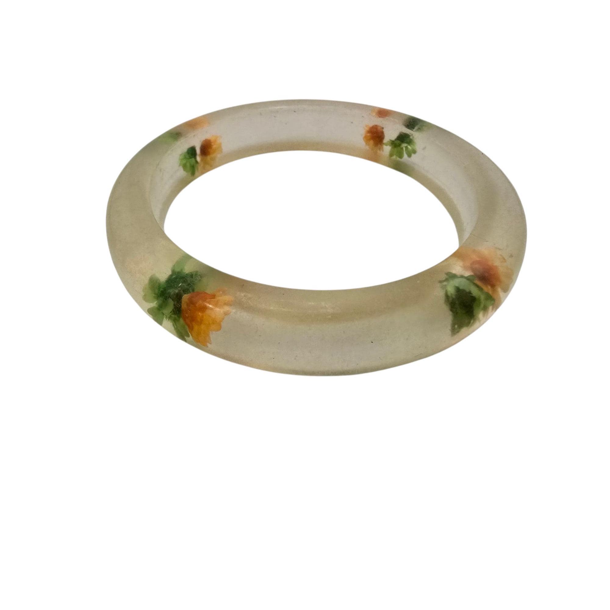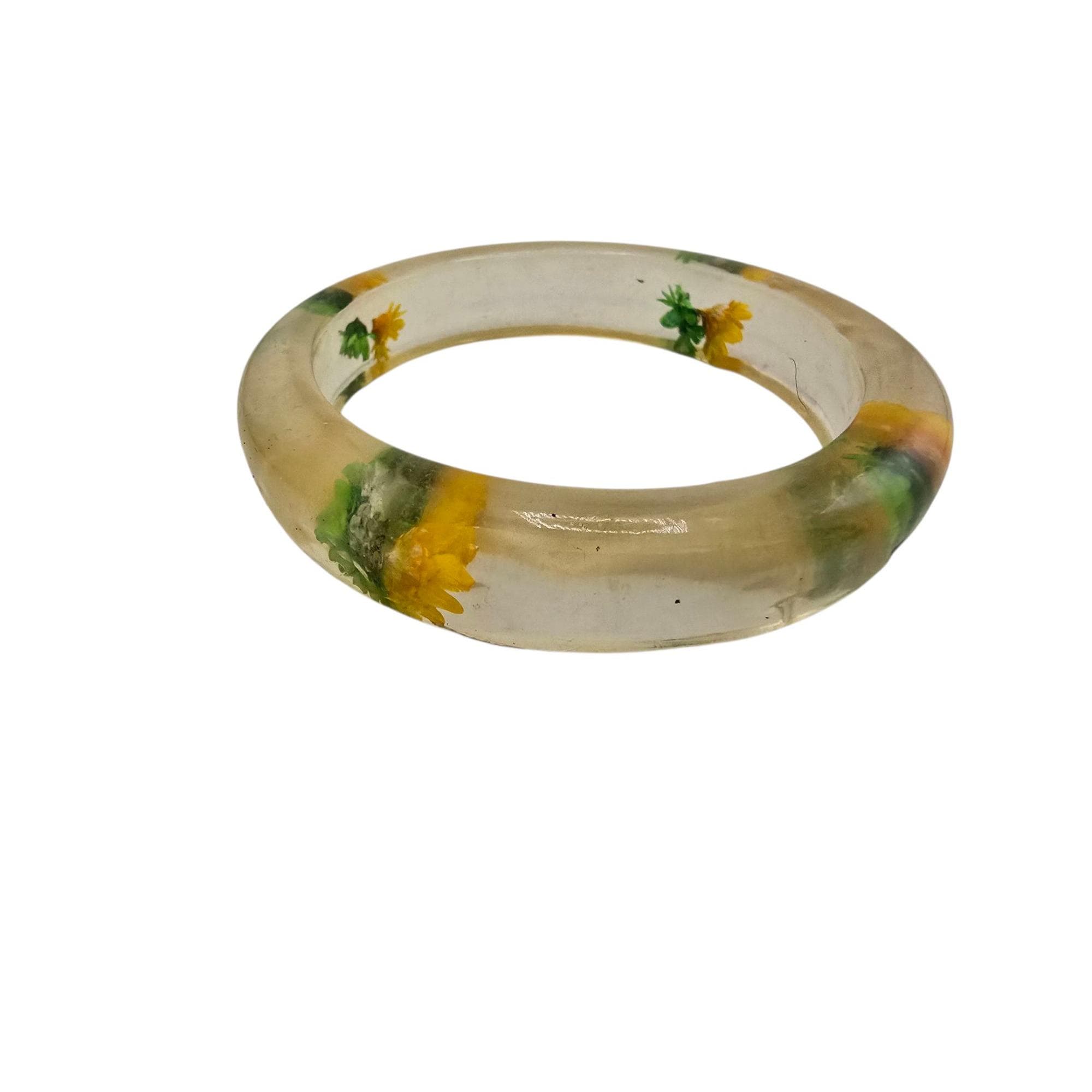 Vintage 60s Green/Light Yellow Dried Flowers Lucite/Acrylic Bangle Bracelet (A9238G)