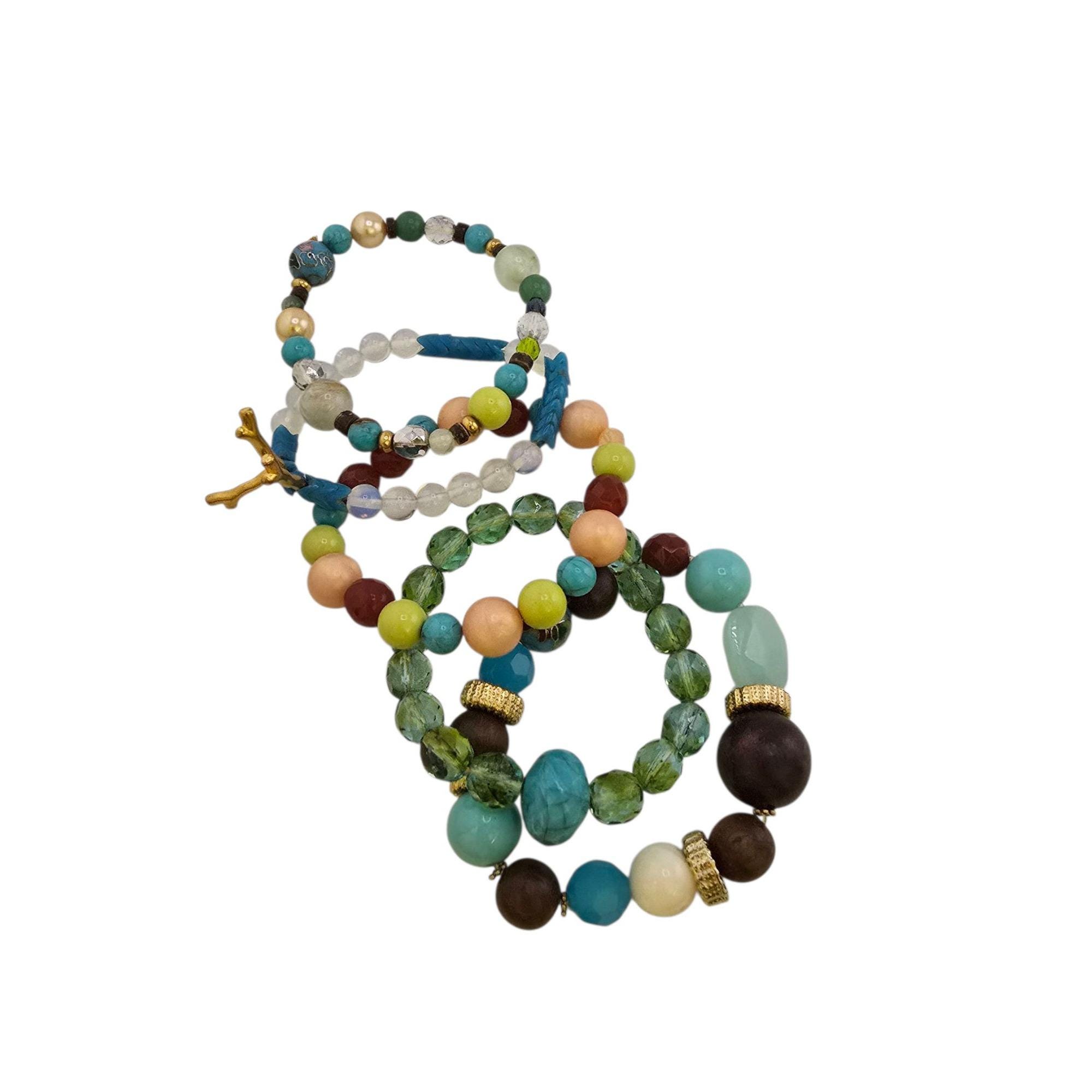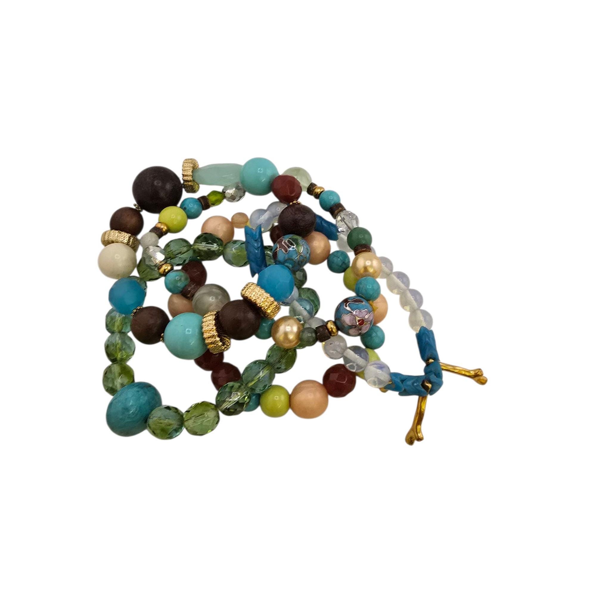 Vintage NOS Bee Charming 5 Strand Assorted Crystal Cloisonne Glass Wood Etc Stretch Beaded Bracelet (A9233)
