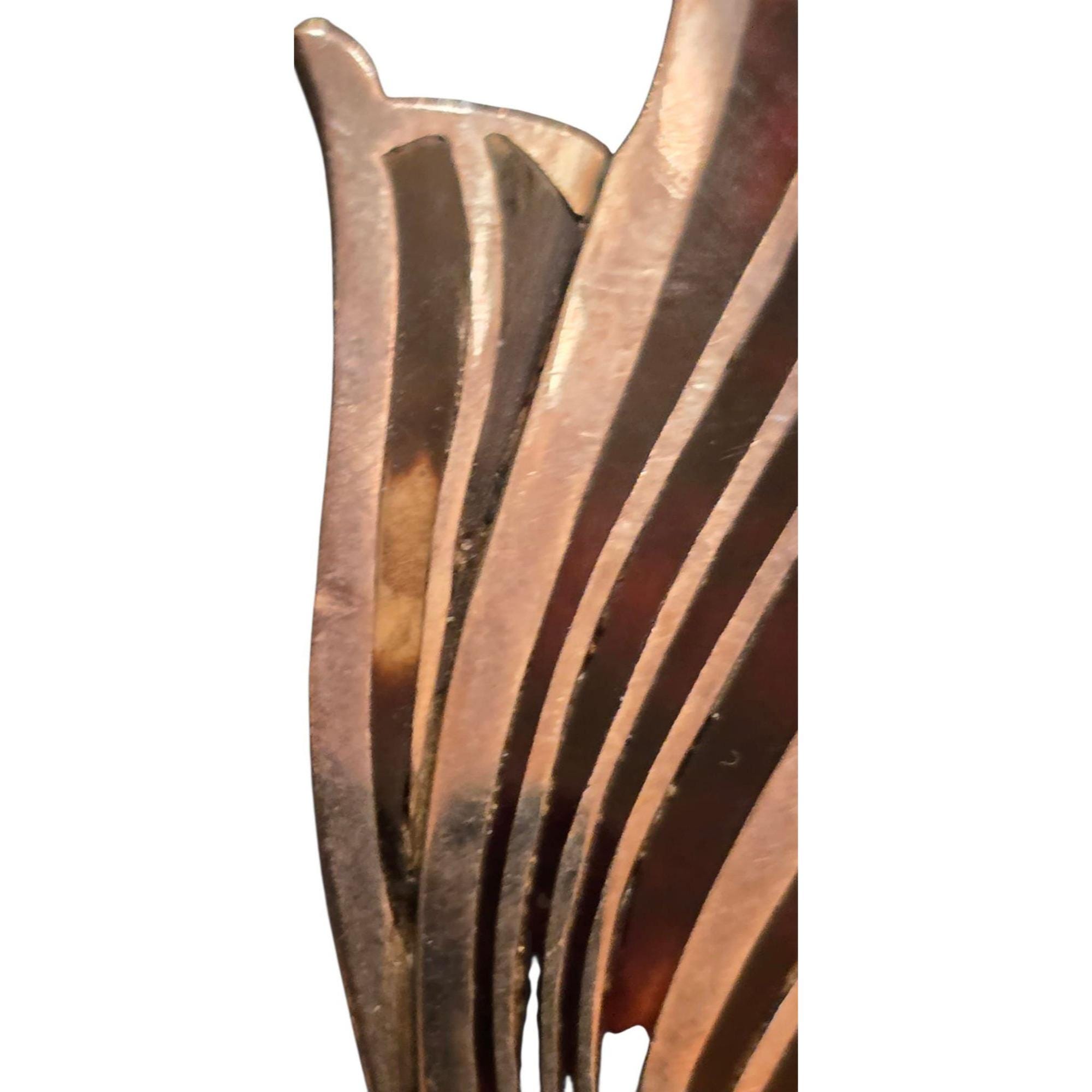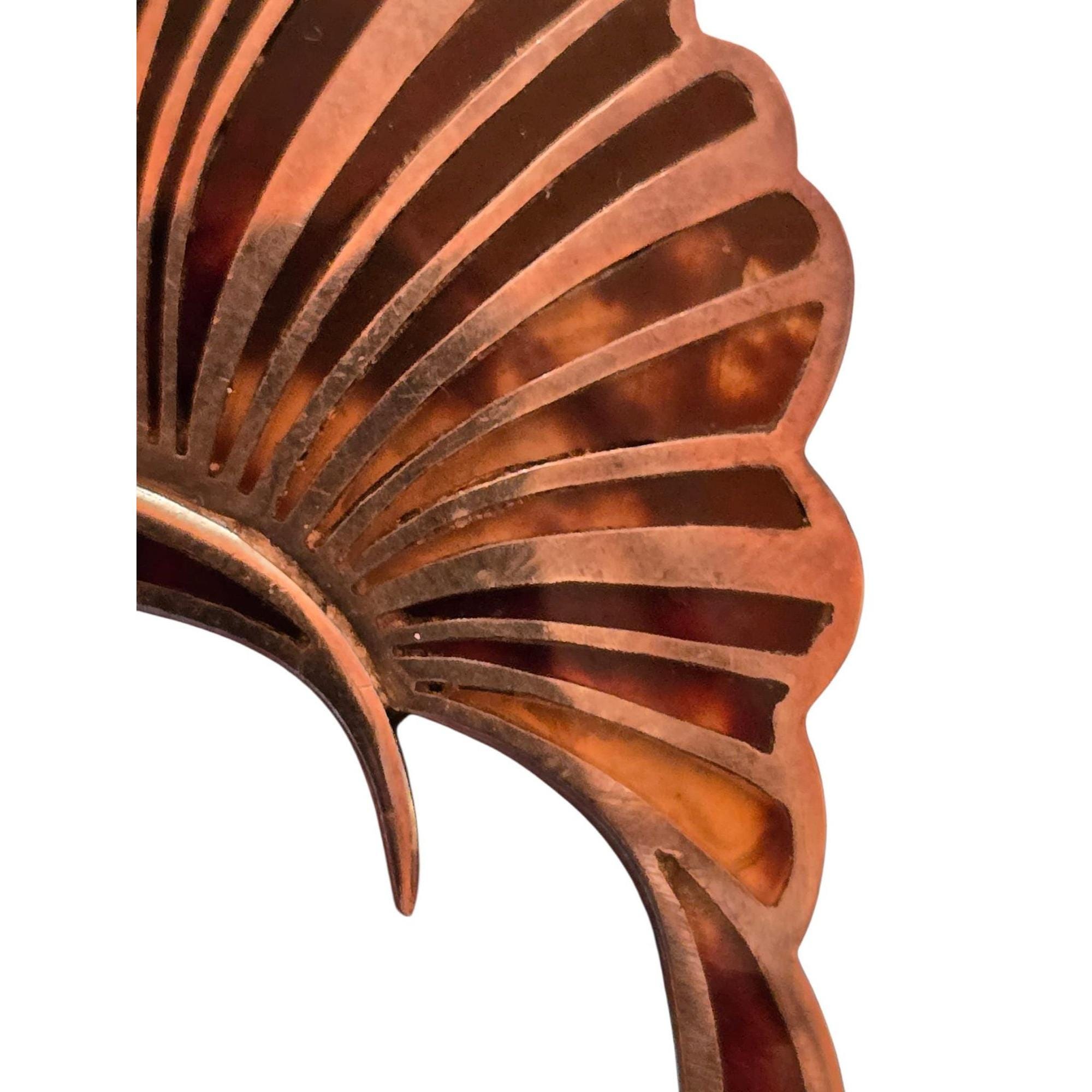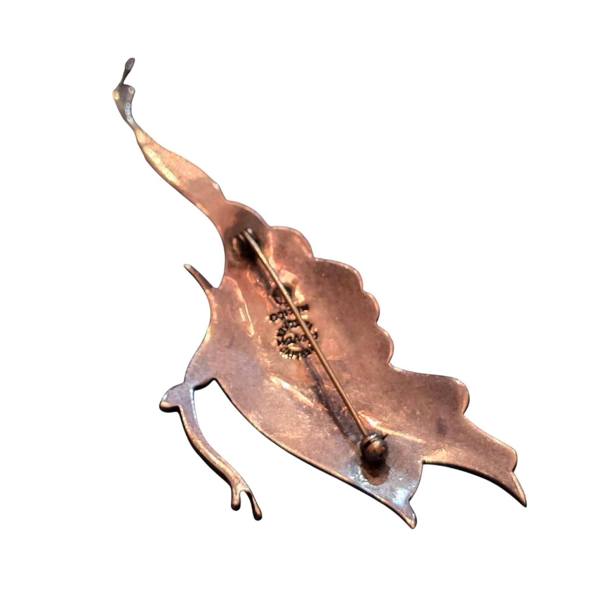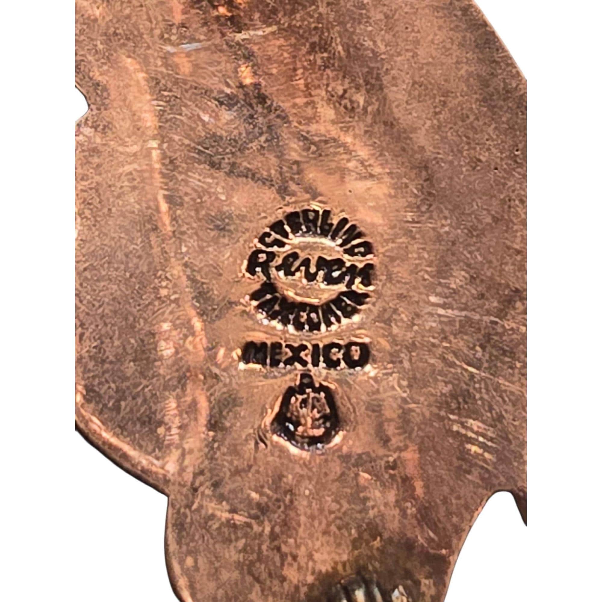 This vintage brooch from Taxco, Mexico, showcases intricate butterfly designs in sterling silver. The faux tortoise inlay adds depth and elegance to this timeless piece.