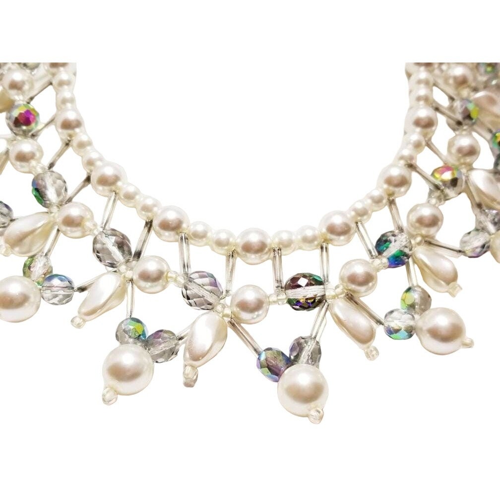 Vintage 1980’s Pearl Crystal Fabulous Bib Necklace (RL-331)